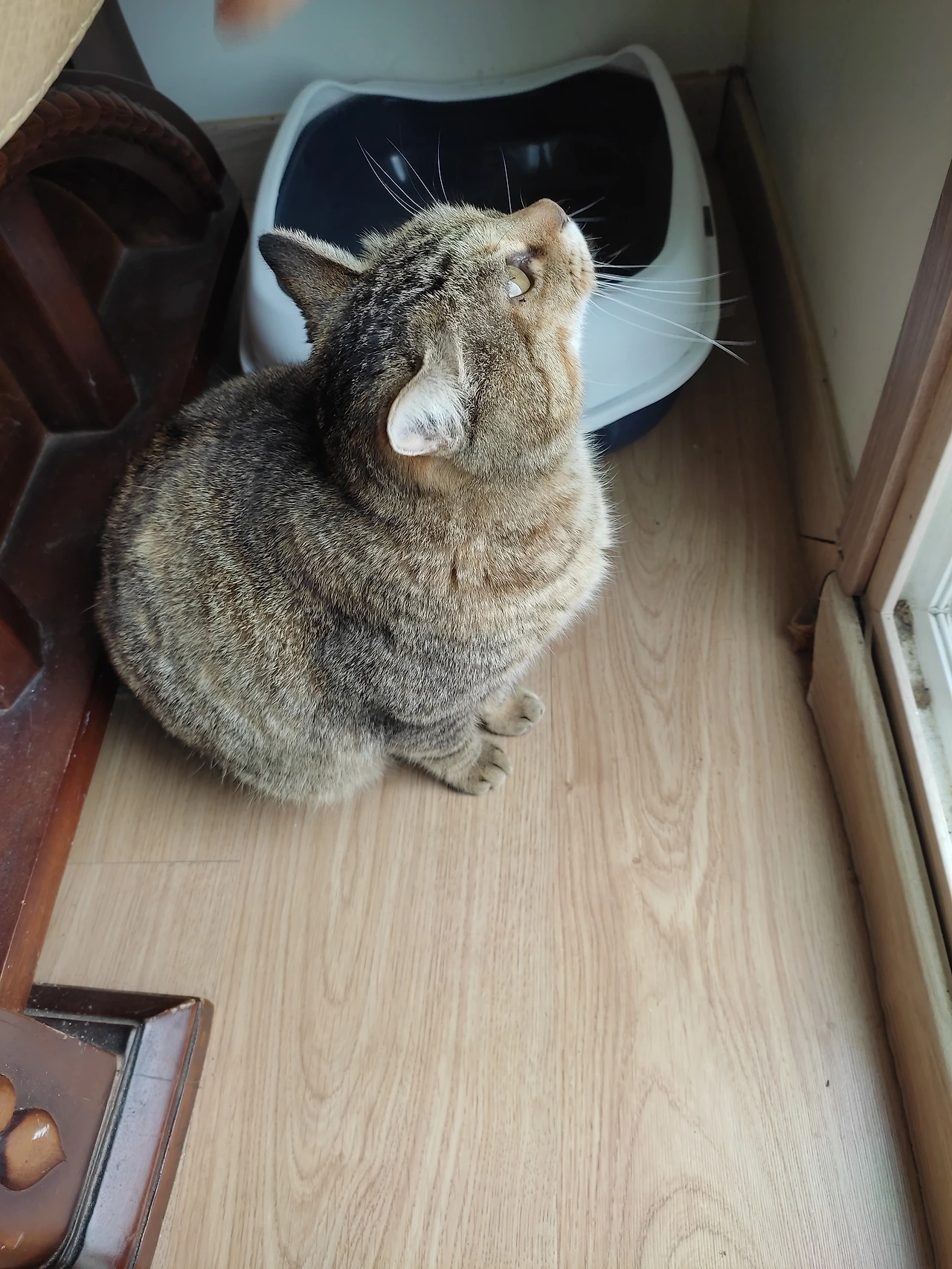 며칠간의 태풍으로 밤낮으로 비바람이 몰아쳤다. 스티로폼 박스 안에 계속 있는 것도 답답한지 집 위로 올라가서 또 한참을 앉아 있는다. 바람 때문에 비가 옆으로 오는데도 부들부들 떨며 박스 안으로 들어가지 않는다. 밤이 되니 번개까지 치고 바람은 돌풍급으로 바뀌었다. 다음날 또다시 예보된 태풍에 결국 우리는 거실 문을 열어주었다. 거실로 공간을 한정한다는 조건으로. 예상외로 집안에 들어온 마당냥이는 이제 되었다는 듯이 집안을 돌아다니지 않고 거실 바닥 한가운데에 덩그러니 앉아있었다. 예전부터 여기 살았던 것처럼 주인인 듯 꼬리까지 흔들며 자리를 잡고 앉았다.