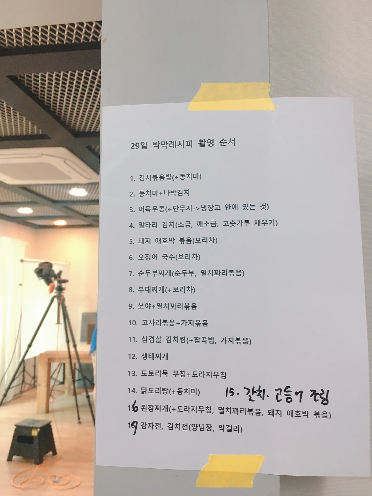 1. 레시피를 몇 가지 실을지 가짓수를 정한다. (한식이었으니 손이 배가 가고, 재료 가짓수도 많았다. 1시간에 요리 하나 찍을 수 있다)