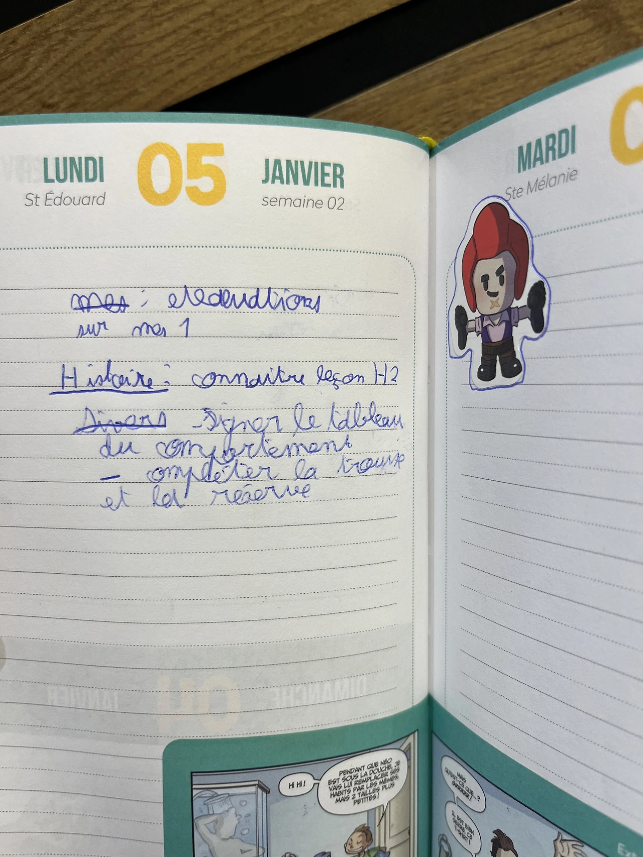 divers, signer le tableau du comportement, compléter la trousse et la réserve