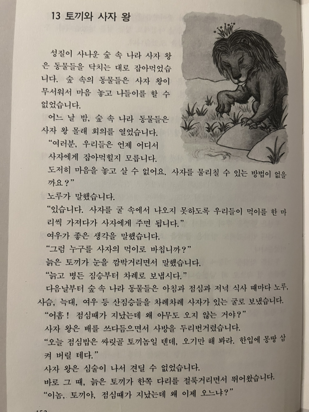 (교활한 토끼는 꾀로 사자 왕을 물리쳤다.)