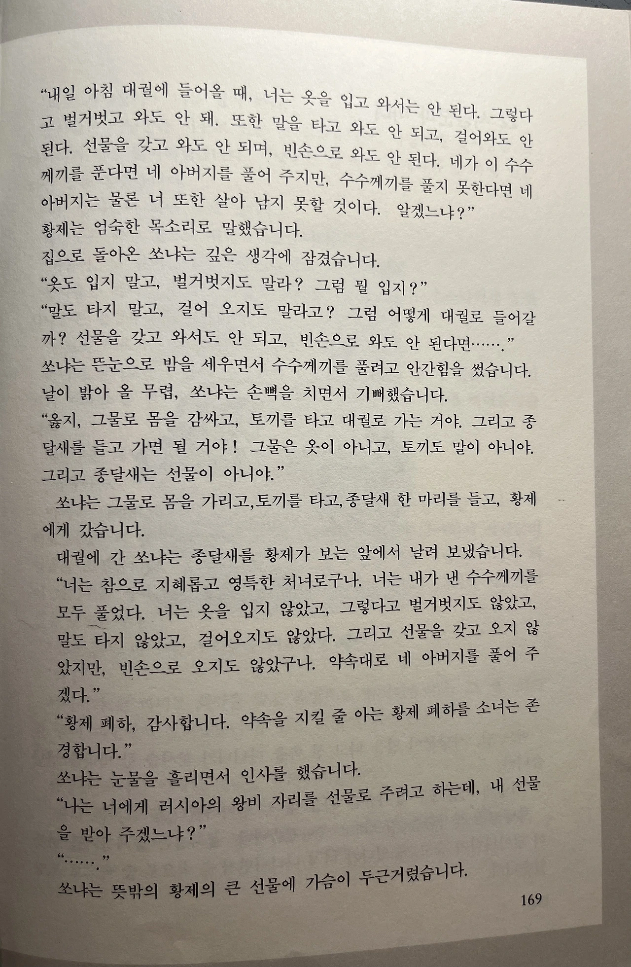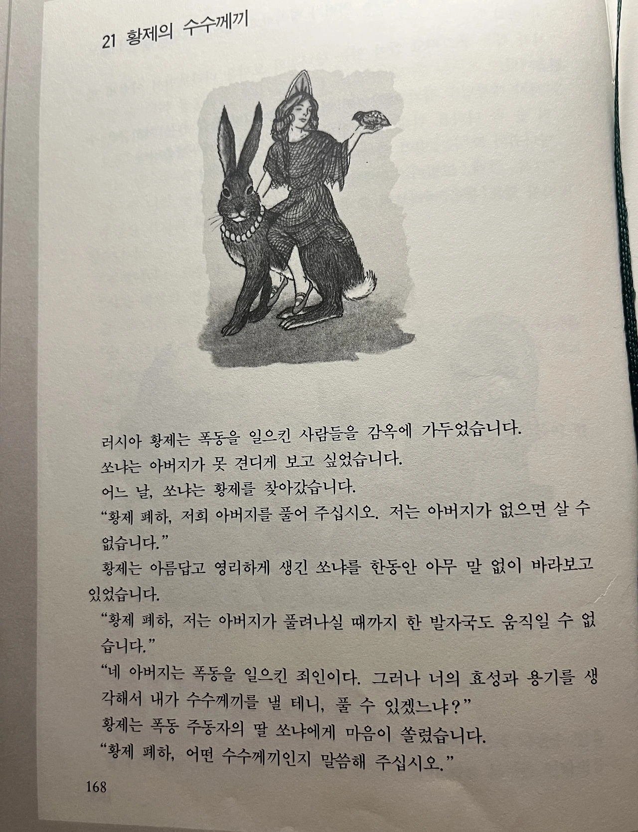 황제는 아름답고 영리하게 생긴 쏘냐를 한동안 아무 말 없이 바라보고 있었습니다.