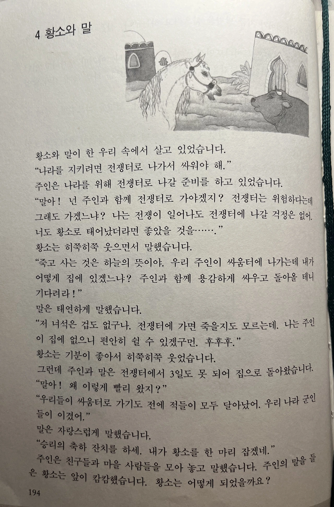 나는 전쟁이 일어나도 전쟁터에 나갈 걱정은 없어. 너도 황소로 태어났더라면 좋았을 것을...