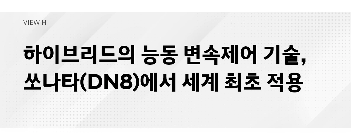 현대차는 2019년 쏘나타 하이브리드를 선보이면서 세계 최초로 능동 변속제어 기술을 적용해 하이브리드 기술력을 세계에 과시했습니다. 이질감이 짙었던 변속감은 풀리지 않을 것만 같은 난제였지만, 능동 변속제어 기술은 모터와 엔진 간의 문제를 말끔히 해결해 주었습니다.