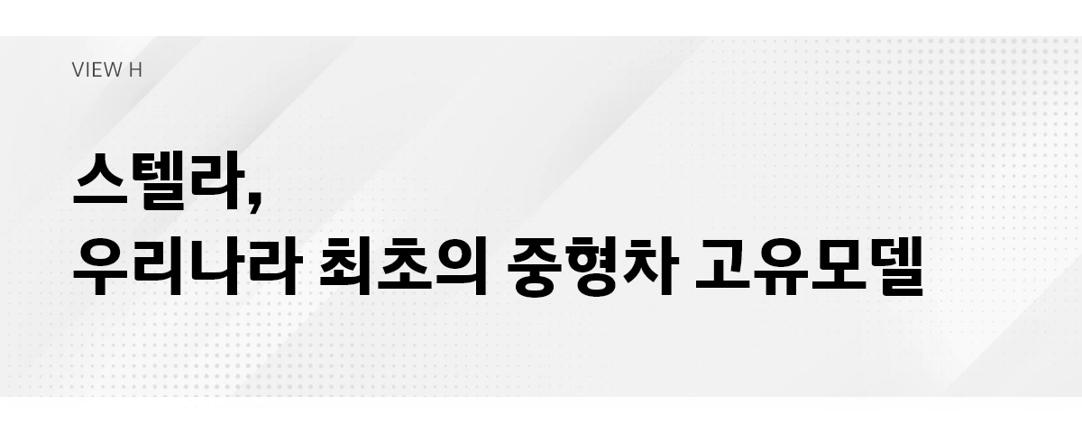 현재 국민차이자, 중형차의 교과서로 통하는 쏘나타의 뿌리는 우리나라 최초의 중형차 고유 모델인 스텔라부터 시작됩니다. 스텔라는 당시 포드와 제휴를 통해 생산 중이던 코티나의 후기형 모델로 현대차가 직접 개발에 나선 중형차입니다. 기존 코티나의 후륜구동 플랫폼, 포니를 디자인했던 조르제토 주이아로의 디자인, 미쓰비시의 엔진 등이 더해져 약 5년간 개발된 스텔라는 지금의 8세대 쏘나타까지 이어오며, 국민차로 사랑받고 있습니다.