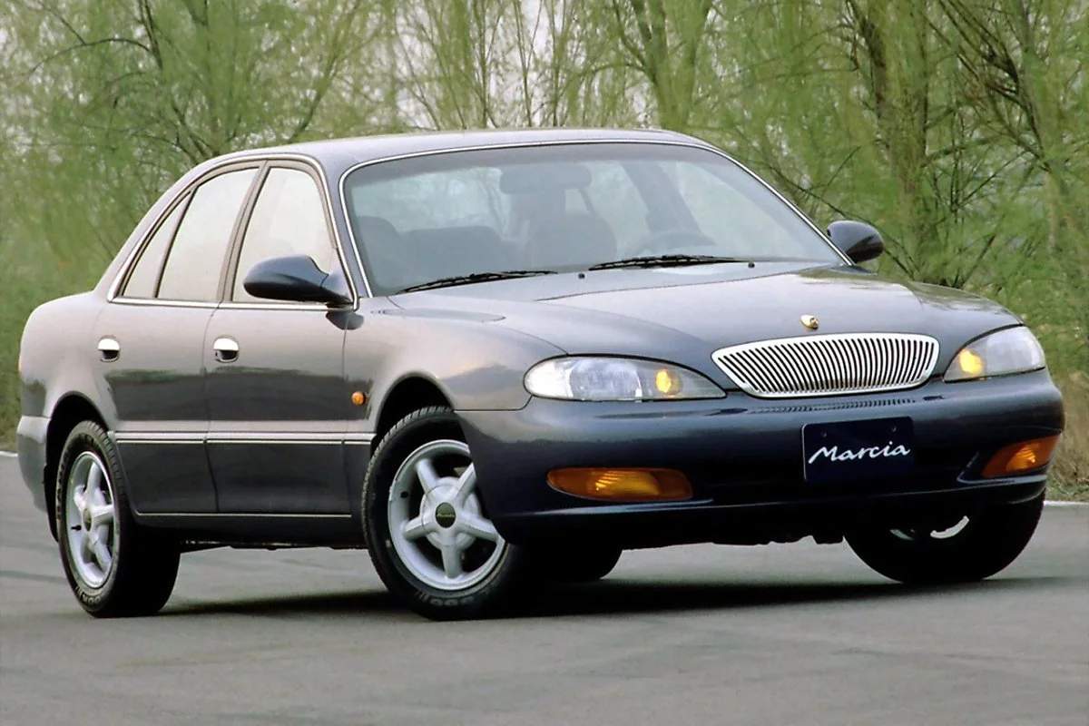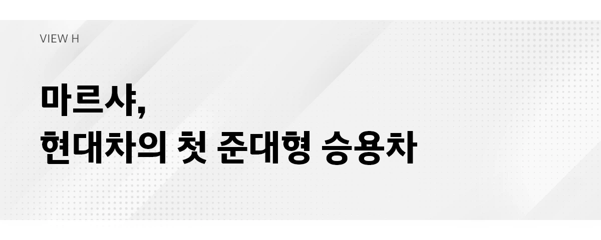 현대차 마르샤는 1995년 출시된 모델로 2세대와 3세대 쏘나타와 플랫폼을 공유하는 모델입니다. 차량 크기는 쏘나타와 크게 다르지 않았지만, 대형차인 그랜저의 파워트레인과 옵션이 적용된 고급형 모델이었습니다. 최고출력 173마력을 발휘하는 2.5리터 V6 가솔린 엔진을 탑재하고, 오토 에어컨, 우드그레인 마감재 등이 적용되어 당시 중형차 대비 진보된 모습을 보여줬습니다. 또한 마르샤는 국내에서 준대형 승용차 세그먼트를 만드는 데 큰 역할을 했습니다.