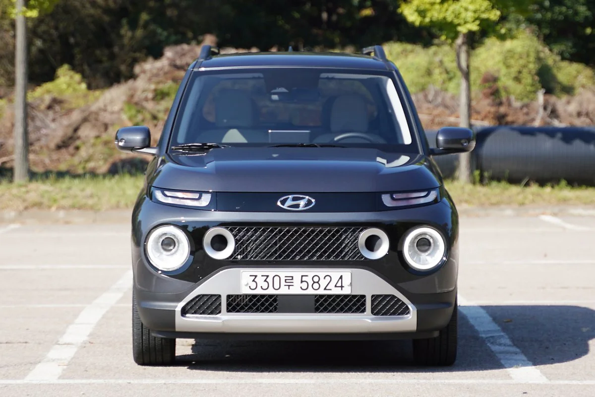 현대차 캐스퍼는 컴팩트한 차체 크기에 볼륨감 있는 펜더, 무광 블랙의 클레딩 등 강인한 SUV 디자인 요소가 곳곳에 반영됐습니다. 캐스퍼 밴 역시 SUV 스타일을 유지하는 두툼한 펜더, 무광 블랙 클레딩까지 동일합니다. 특히 두 모델은 카파 1.0 터보 엔진을 탑재한 모델로 메쉬타입 그릴과 원형 에어 인테이크, 스키드 플레이트 디자인이 추가되어 스포티한 느낌을 유지했습니다. 두 모델은 프로젝션 헤드램프와 아웃 사이드미러 LED 방향지시등과 정도가 다른데, 이는 캐스퍼 밴이 스마트 트림으로만 운영되기 때문에 발생하는 차이일 뿐입니다.