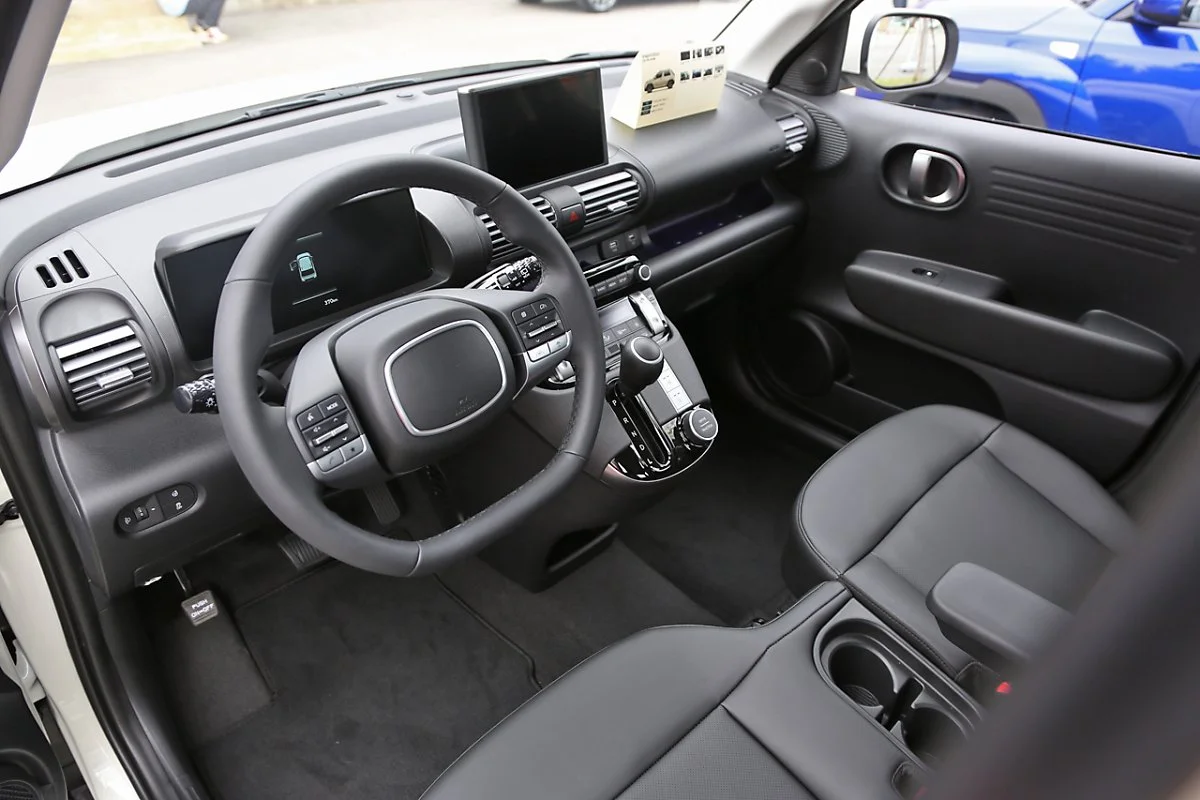실내로 들어서면 차량의 성격에 맞는 실내 구성을 확인할 수 있습니다. 캐스퍼 인스퍼레이션 모델은 블루링크, 폰 프로젝션, 현대 카페이를 지원하는 8인치 내비게이션과 풀 오토 에어컨 등 승용 모델의 최신 편의 사양이 대거 적용됐습니다. 반면 캐스퍼 밴은 4.2인치 LCD가 적용된 디지털 클러스터, 다이얼 방식의 공조기, 2개의 USB 충전 포트를 지원해 실용성에 초점을 맞췄습니다. 또한 여름과 겨울에 쾌적한 운행이 가능하도록 열선 스티어링 휠과 1열 열선시트, 운전석 통풍 시트를 적용했습니다.