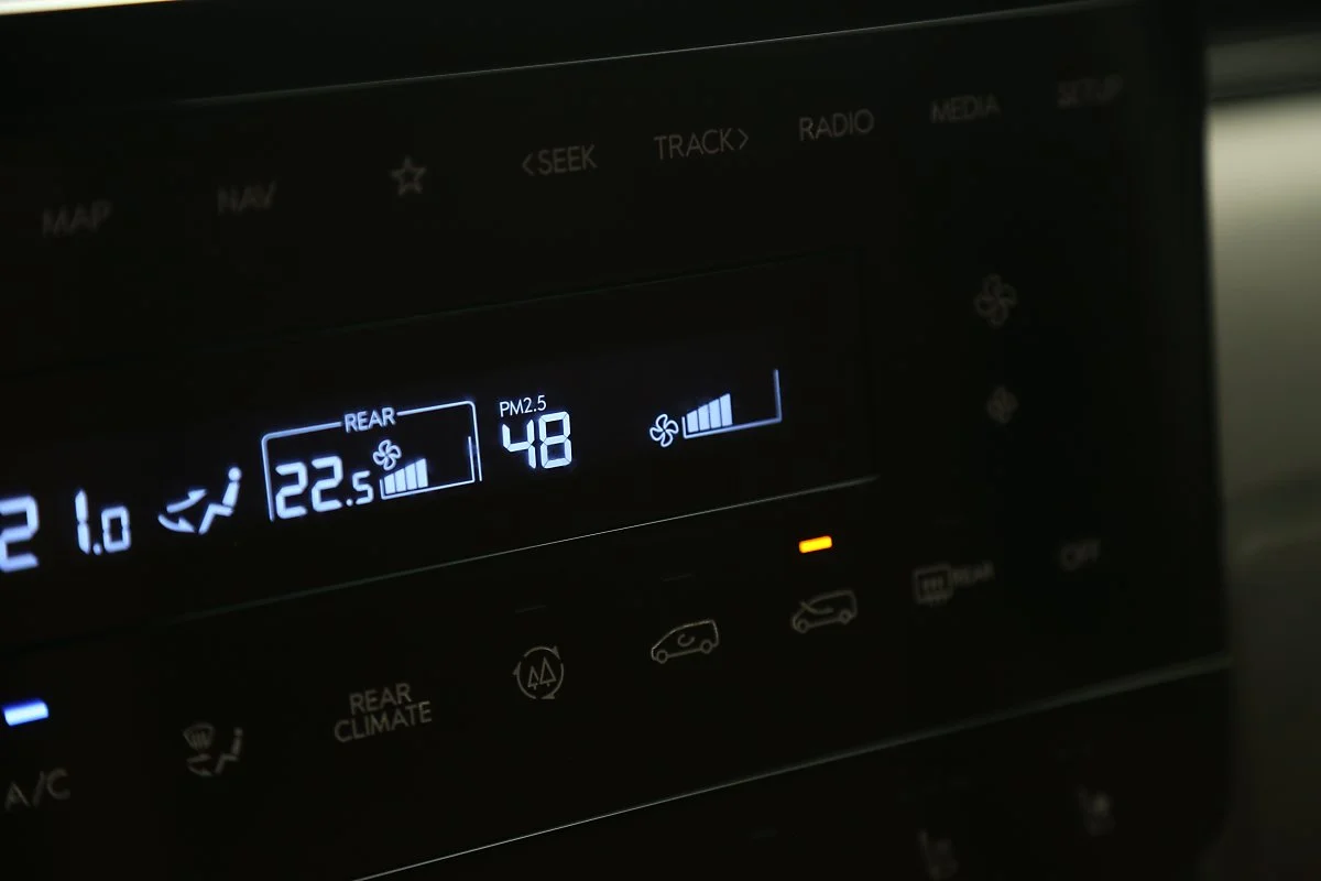 공기 청정 시스템의 반응 속도와 성능을 확인하기 위해 스타리아 라운지 차량을 활용해 미세먼지가 나쁜 날 창문을 열어봤습니다. 스타리아 라운지의 공기 청정 시스템은 창문을 연 후 빠르게 미세먼지 농도를 48㎍/m³로 측정하고, 나쁨에 해당하는 오렌지 색상을 인포테인먼트 디스플레이 창에 띄우며 빠르게 공기 청정을 시작했습니다. 시간을 측정해 보니 미세먼지 농도가 8㎍/m³까지 내려가는데 3분이 소요됐습니다. 참고로 공기 청정 중에는 농도에 따라 외부 공기 차단을 위해 자동으로 창문이 닫히고, 풍량, 내/외기 전환, 에어컨이 작동될 수 있습니다.