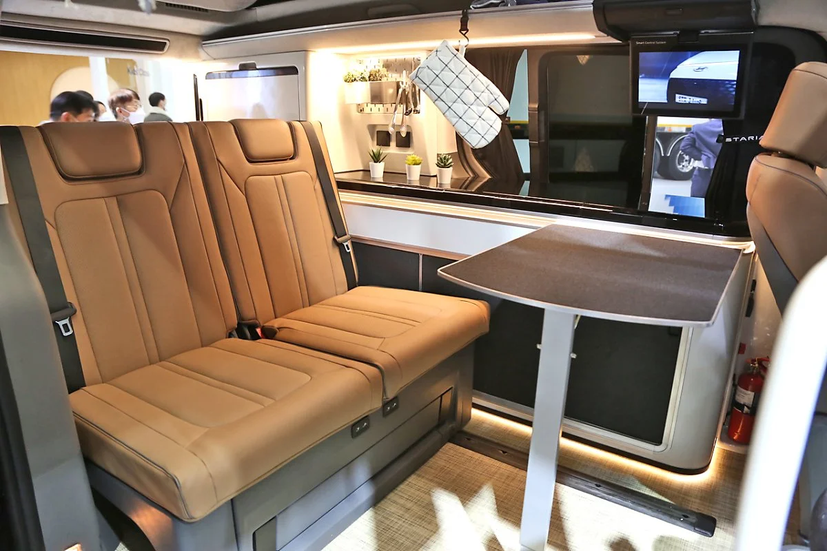 국내 대표 패밀리카 중 하나인 현대차 스타리아 라운지 역시 최신 공기 청정 시스템이 탑재되어 쾌적한 실내 공기질과 거주성을 제공하고 있습니다. 공기 청정 시스템을 선택하면 차량 내 장착된 미세먼지 센서를 이용해 미세먼지 농도를 감지하고, 작동 상태 표시창에 실내 공기 상태를 표시합니다. 공기 상태에 따라 좋음(블루, 15㎍/m³ 이하), 보통(그린, 35㎍/m³ 이하), 나쁨(오렌지, 75㎍/m³ 이하), 매우 나쁨(레드, 76㎍/m³ 이상)으로 4단계로 표시됩니다.