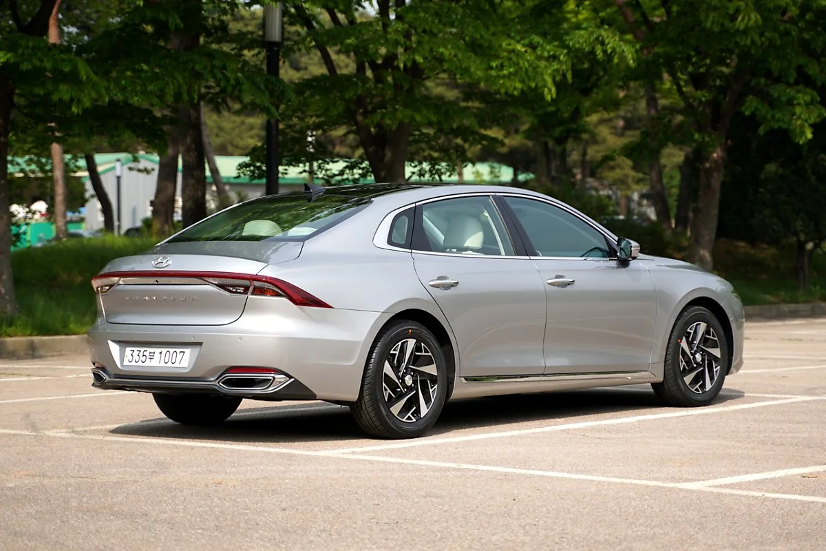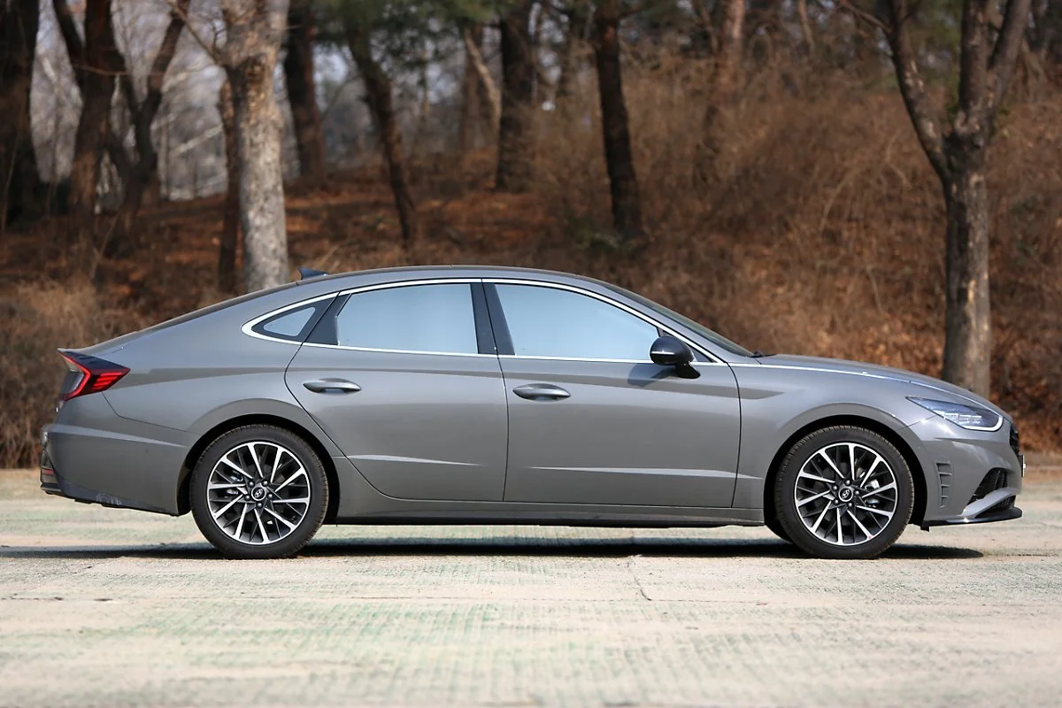또 하나의 디자인 요소는 캐릭터 라인이 깊게 들어가지 않았다는 점입니다. 쏘나타는 역동성을 강조하기 위해 캐릭터라인을 깊고 뚜렷하게 처리했습니다. 반대로 고급 세단의 경우 캐릭터라인을 옅게 넣어서 매끄러운 바디를 만들어 우아한 고급감을 살립니다. 그랜저도 이와 같은 디자인을 차용해 오래 보아도 질리지 않는 고급스러운 디자인을 만들어 냅니다. 스포츠 주행을 하는 것이 아닌 편안하게 이동하는 것을 원하는 주 수요층의 선호도에 맞게 설정된 디자인이라고 할 수 있습니다.