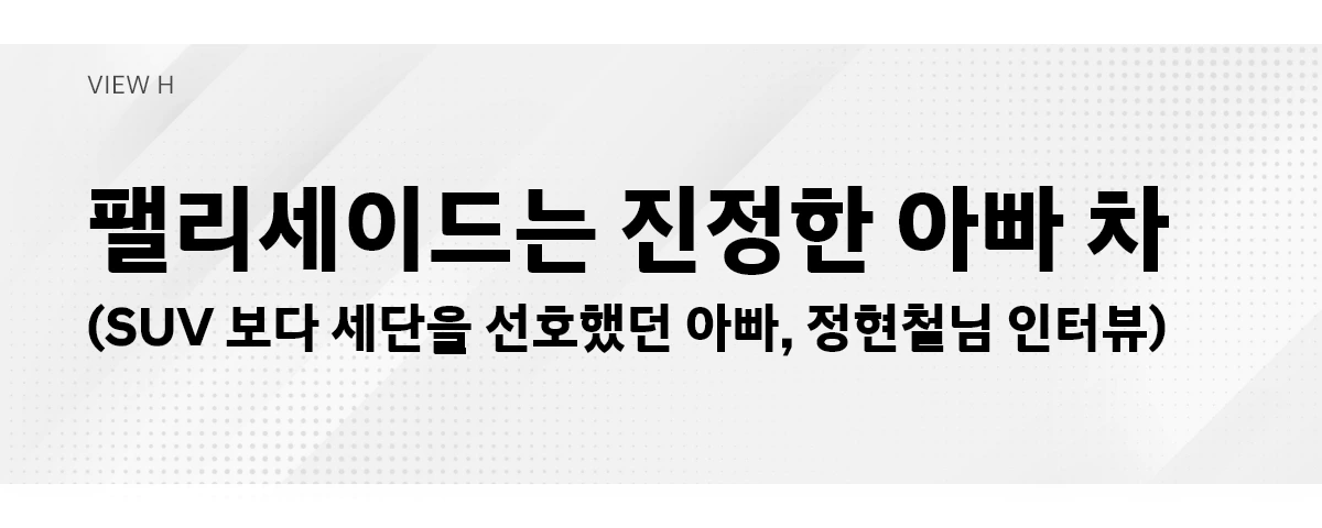 정현철 님 : 팰리세이드는 출시 초반부터 인기가 상당했던 것으로 기억합니다. 그러나 SUV가 제 취향은 아니었기 때문에 당시에는 이해하지 못했었습니다. 저와 나이가 비슷한 사람들이 팰리세이드를 구매하는데도 말이죠.
