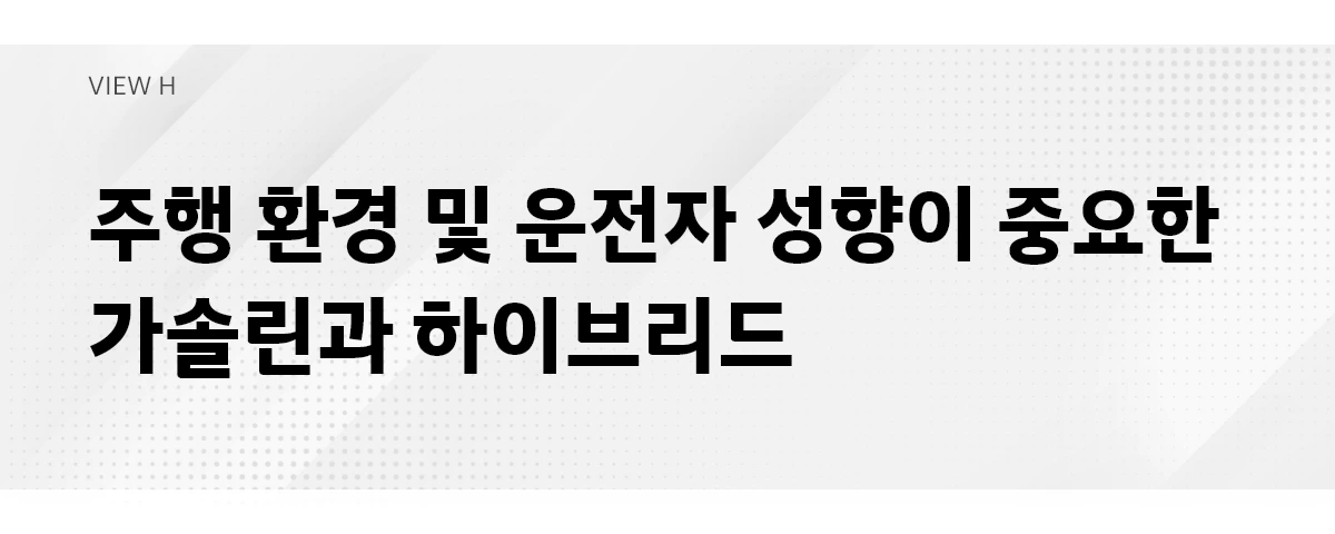 이처럼 도심에서만 주행하는 경우가 아니거나, 차량의 교체 주기가 짧다면 가솔린이 더 나을 수도 있습니다. 하지만 도심 주행이 대부분이면서 차량 교체 주기가 길다면 하이브리드가 주유비 절감 측면에서는 훨씬 더 큰 이득입니다. 물론 감성적인 취향도 무시할 수는 없습니다. 가솔린 모델이 주는 운전의 즐거움과 하이브리드 차량의 정숙성과 부드러운 감각은 완전히 다르기 때문입니다. 동일 조건의 예산이라면 여러분의 선택은 사양이 더 좋은 가솔린인가요, 아니면 유지비 절감에 도움이 되는 하이브리드인가요?