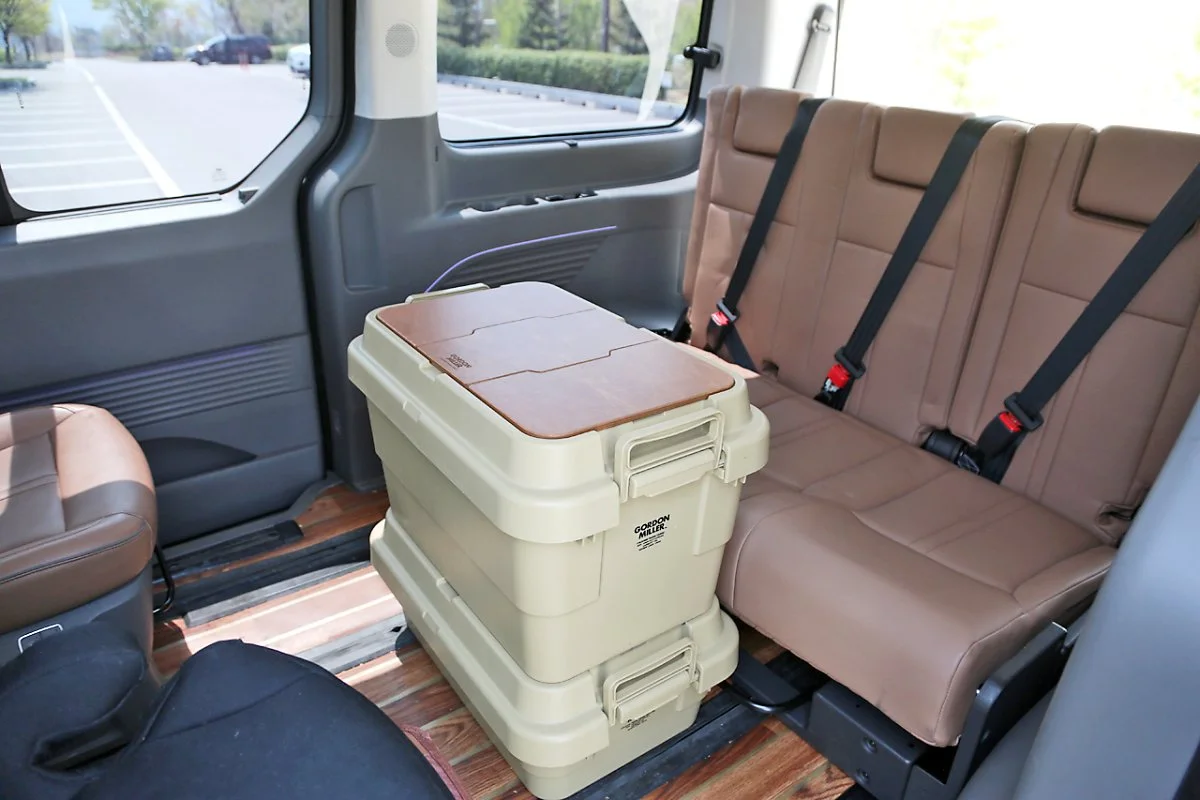 저희 가족은 바닷가를 자주 가는 편이거든요. 라운지 9인승 모델은 스위블링 시트가 장착되잖아요? 코로나19가 심각하거나, 맛집의 대기가 길 때, 저희는 음식 포장해서 바닷가에 주차하고, 차에서 먹었습니다. 시트 회전이 되니까. 내부에서 캠핑박스만 놓더라도 바로 식사 공간이 되더라고요.