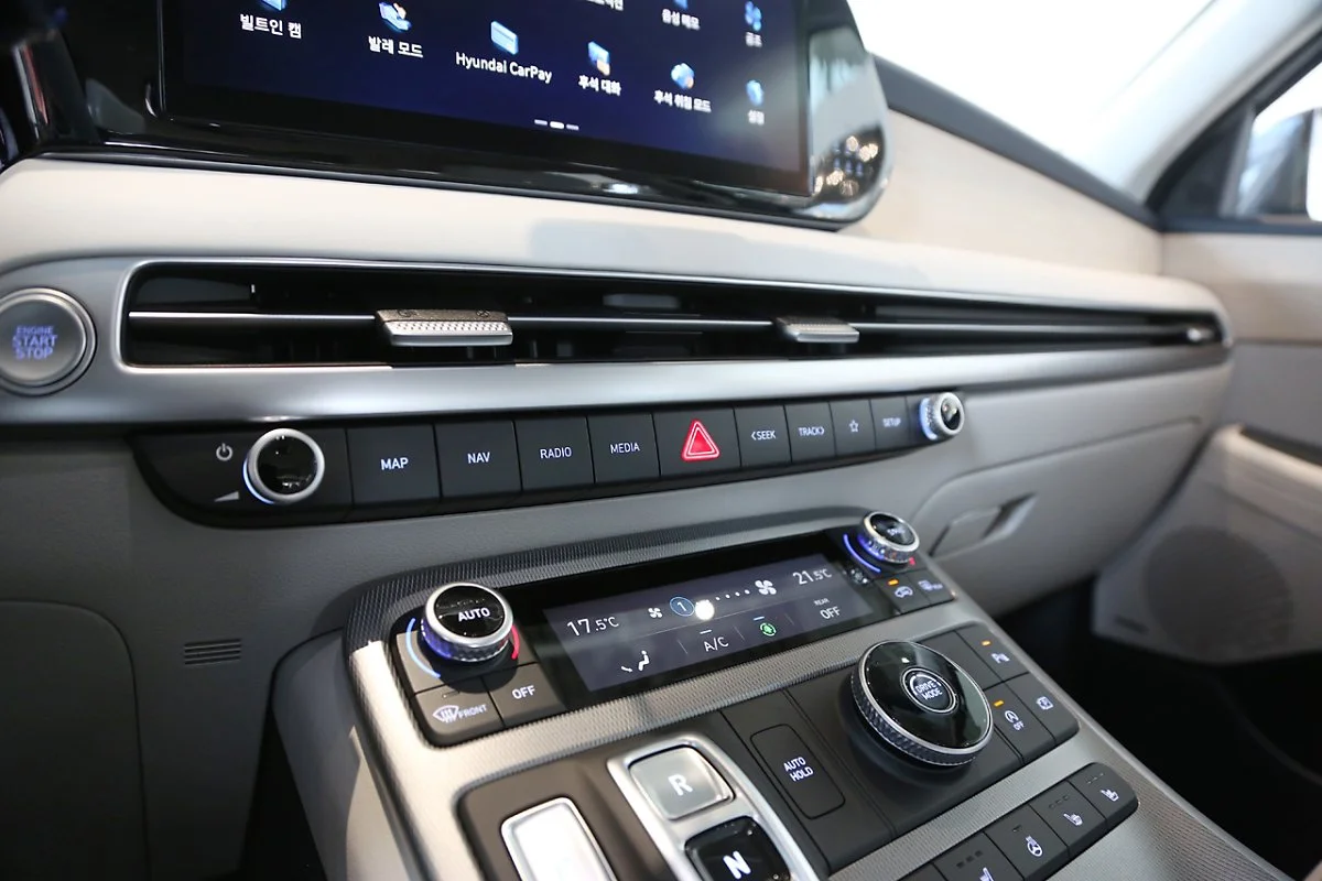 에어벤트의 경우 실내 폭이 강조되는 슬림 하고, 와이드 한 형태로 재구성되었습니다. 실버 색상이었던 에어벤트 하단부 주요 버튼들의 경우 블랙 바탕에 화이트 폰트 적용으로 가독성을 높여 사용성이 향상되었습니다. 이외에도 디지털 디스플레이를 포함해 기능적 요소의 업그레이드가 이뤄졌습니다.