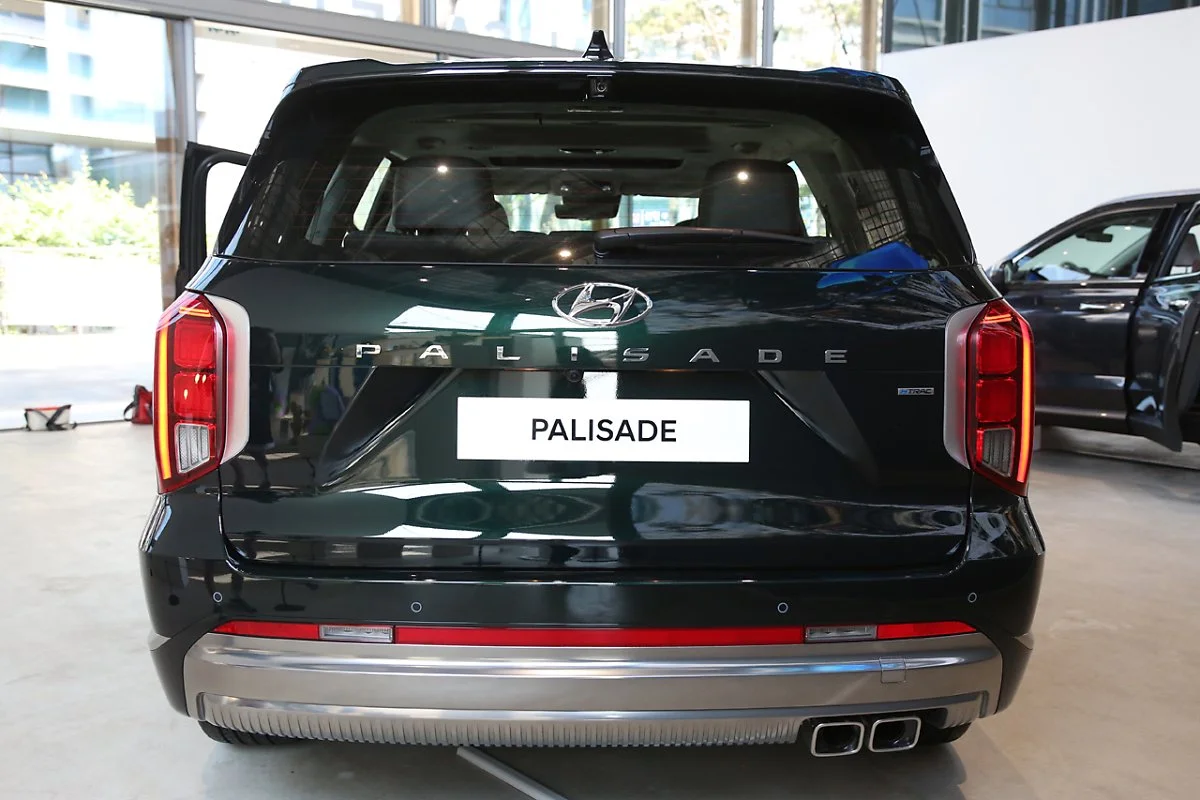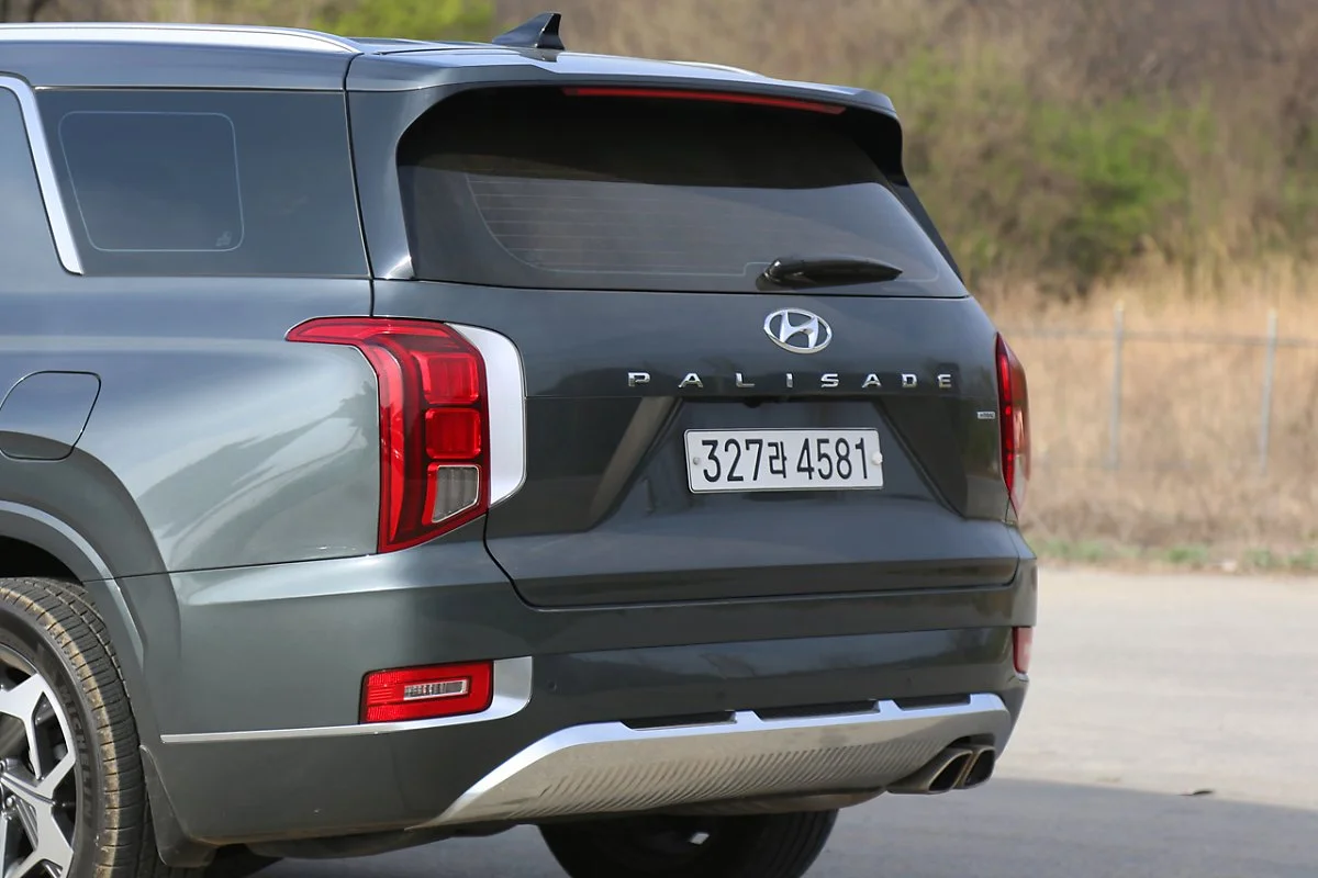 측면부에서는 A 필러에서 C 필러로 떨어지는 크롬 라인이 팰리세이드만의 아이덴티티로 강조되었습니다. 스포티함보다는 무게감 있는 구성이 필요한 기함 모델이기 때문에 사다리꼴 형상의 윈도 그래픽은 시각적으로 안정감 있는 느낌을 줍니다.