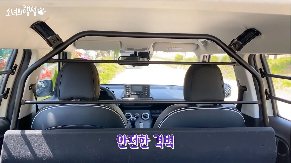 또한 주행 중 창문을 열면 강아지들이 머리를 내밀어 위험한데요. 캐스퍼 밴은 다른 차량과 달리 2열에 보호봉이 있습니다.