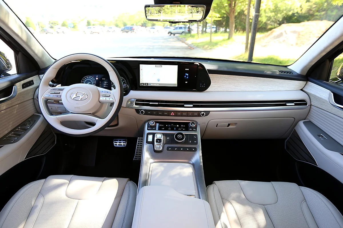 승차감은 투박한 SUV의 감성이 아니라, 세단처럼 부드럽고 편안합니다. 시멘트로 포장된 고속도로에서 주행할 때 불쾌한 잔진동이 올라오는 차량들이 있는데, 더 뉴 팰리세이드는 잔진동이 매우 적으면서도 안정감이 돋보였습니다. 이는 서스펜션에 주파수 감응형 밸브가 추가되었기 때문입니다. 또한 스티어링 휠이 기존 대비 살짝 더 두툼해서 심리적인 안정감도 더해줍니다.