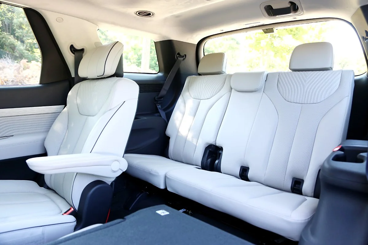 미니밴의 장점은 넓은 실내 공간인데요. 공간만큼은 더 뉴 팰리세이드도 넓고 쾌적합니다. 3열까지 성인이 탑승할 수 있고, 아이들은 장거리 주행 시에도 부담 없이 탑승할 수 있습니다. 게다가 3열 시트 뒤로도 적재공간이 존재하기 때문에 무늬만 7인승이 아니라, 실질적으로 7인승으로 활용할 수 있는 대형 SUV입니다. 또한 에어밴트와 USB 충전 단자, 컵홀더는 어떤 좌석에서도 여유롭게 활용이 가능합니다.