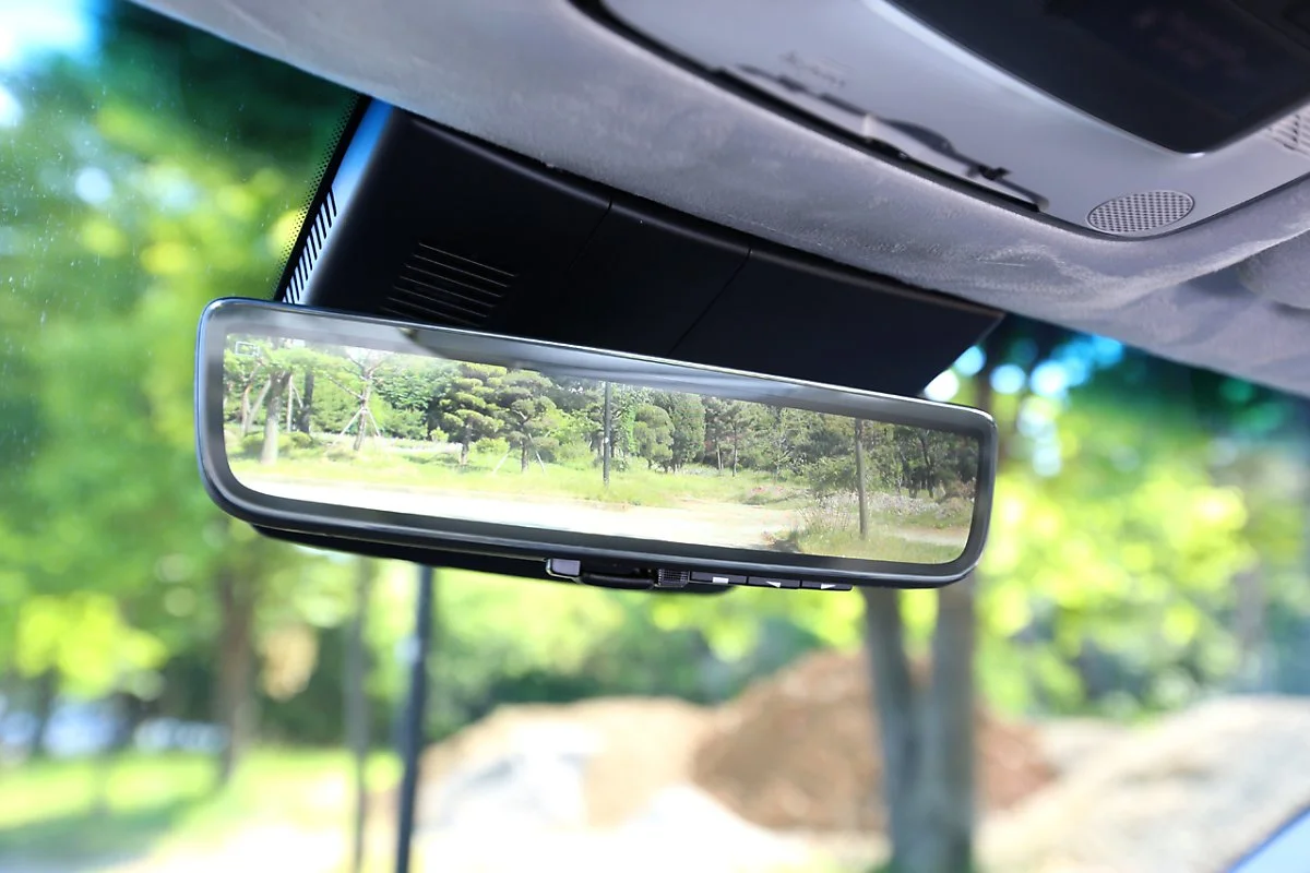 새롭게 추가된 디지털 센터 미러는 후석에 동승객이 탑승하고 있을 때, 특히 3열 중앙에 탑승객이 있을 경우에는 후방 시야가 좋지 않습니다. 캠핑을 다니거나, 큰 짐이 적재되어 있을 때도 마찬가지입니다. 또한 운전자를 교대했을 때, 메모리 시트를 사용해도 룸미러를 따로 세팅해야 해서 불편한데요. 디지털 센터 미러는 위와 같은 상황뿐만 아니라, 주야간 언제나 선명한 화질로 더 뚜렷하게 표현해 주기 때문에 안전운전에 도움을 줍니다. 밝기도 조절 가능해서 특히나 더 유용했습니다.