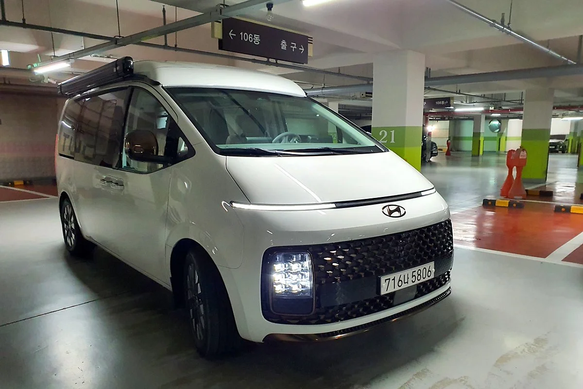 포레스트가 1톤 트럭을 기반으로 한 정통 모터홈이라면, 스타리아 라운지 캠퍼 4는 차박과 모터홈 사이에서 적절한 효율성을 추구한 모델입니다. 스타리아 라운지 캠퍼 4는 모델명에서 드러나는 것처럼 스타리아 라운지를 기반으로 제작되는 캠핑카입니다. 그래서 디자인도 일반 라운지 모델과 같아서 고급스러운 이미지를 드러냅니다.
