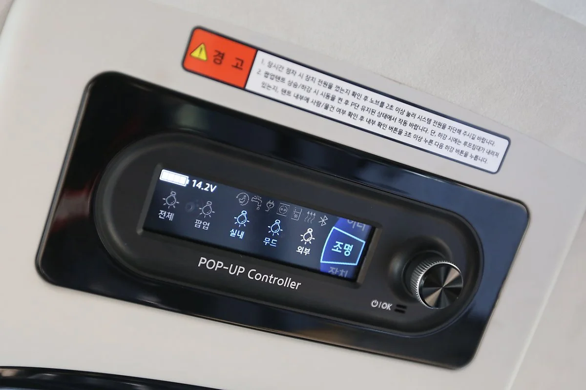 특히 안전 부분에서도 모두 검증된 제품을 사용했습니다. 배터리나 인버터, 주행 충전기 등의 전기 장치가 특히 캠핑카에서 잦은 사고가 발생하는 부품인데요. 글로벌 시장에서 인정받았거나, 이미 업계에서 검증된 부품만 사용했습니다. 또 팝업 루프 시스템은 하강할 때 두 눈으로 직접 팝업 루프 내부를 점검하고 접을 수 있도록 별도의 버튼이 마련되었습니다. 또한 팝업 루프 작동은 시동이 걸린 상태에서 사이드브레이크가 잠겨 있는 상황에서만 조작할 수 있습니다.