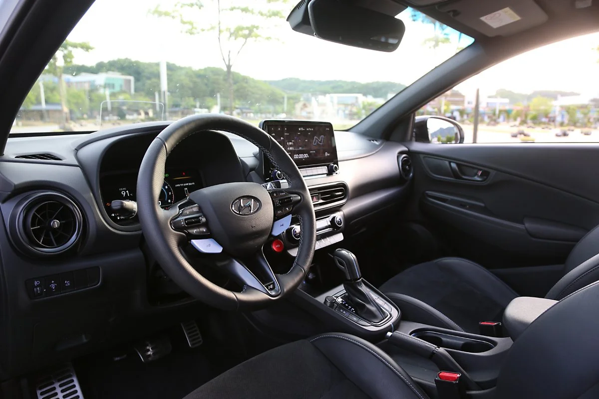 N 전용 엔진과 미션 덕분에 코나 N은 SUV보다 고성능 해치백을 일컫는 핫 해치처럼 재빠른 가속성능을 보여줍니다. 움직임 역시 핫 해치처럼 민첩합니다. 3단계로 세분화돼 감쇠력을 조절하는 전자 제어 서스펜션과 마찬가지로 3단계로 세분화된 e-LSD인 N 코너 카빙 디퍼렌셜이 적용됐기 때문입니다. 또한 고성능 차량에 적합한 피렐리 P Zero 썸머 타이어까지 적용돼 코나 N의 움직임은 민첩하면서도 날쌔게 운전자의 명령을 착실히 따르며 코너를 공략해 나갑니다.
