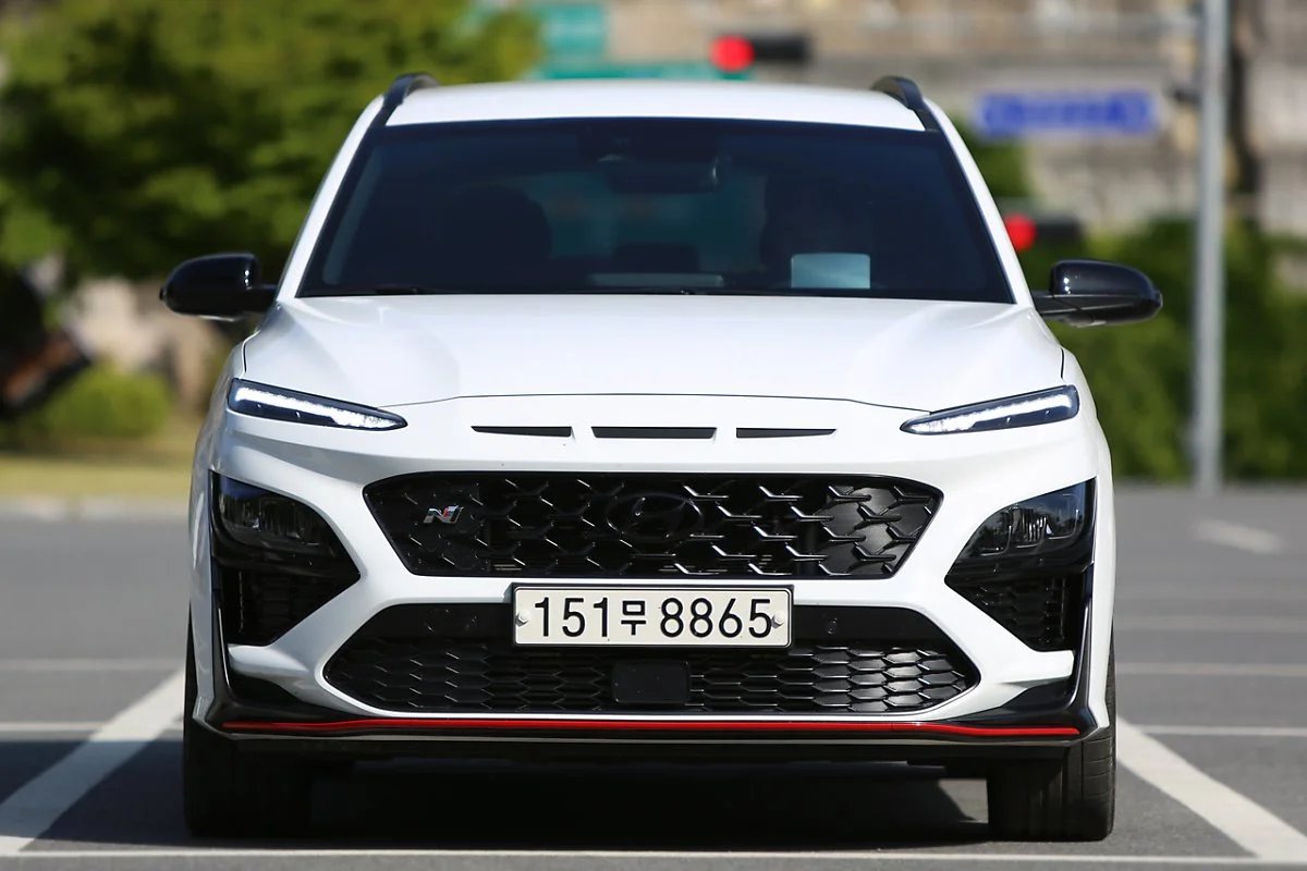 코나 N은 강렬한 외관 디자인이 멋스럽습니다. 바로 N브랜드의 디자인 방향성을 따르고 있기 때문인데요. 적재적소에 배치된 다양한 공기 흡입구로 냉각 성능을 확보했고, 공기 흡입구는 헤드램프와 이어져서 더 강렬해 보이게 합니다. 또한 검은색 현대차 엠블럼은 코나의 다양한 모델들 중 유일하게 코나 N에만 적용하는 특별함도 부여했습니다.