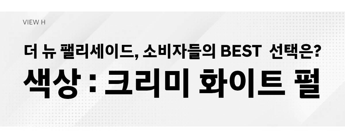 현대자동차의 대형 SUV 더 뉴 팰리세이드가 새로운 디자인과 모델명으로 출시되어 한 달이 지나가고 있습니다. 더 뉴 팰리세이드는 기본 사양을 강화하고, 고급화에 따른 소비자 선택 사양도 다양화했는데요. 소비자들은 더 뉴 팰리세이드를 어떤 사양으로 선택했을까요? 지금부터 실제 소비자들의 BEST 선택을 함께 보겠습니다.