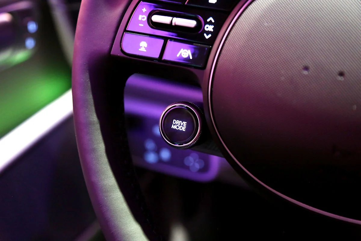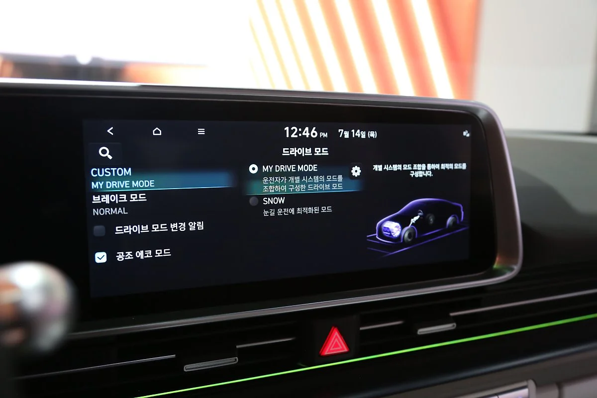 바로 EV 성능 튠업 기술이 현대자동차그룹 최초로 적용되었는데요. EV 성능 튠업은 차량 내 12.3인치 대화면 인포테인먼트 디스플레이를 통해 성능 및 운전감을 조절할 수 있는 기술입니다. 출력과 가속민감도, 4륜 구동방식까지 3단계로 조절 가능하며, 스티어링도 2단계로 조절할 수 있습니다. 이와 더불어 전기차 액티브 사운드 디자인 등을 통해 운전의 즐거움을 극대화했습니다.