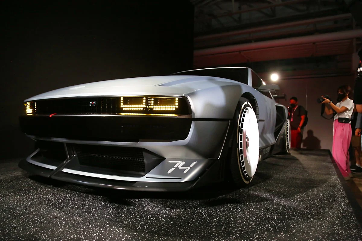 이외에도 아이오닉의 아이덴티티로 자리 잡은 파라메트릭 픽셀의 헤드 램프, 리어램프와 더불어 곳곳에 디지털스러운 그래픽 디자인이 적용돼 뉴트로를 표방하는 차체 디자인과 절묘한 조합을 만들어냅니다. 차량 프런트 범퍼와 상단부에도 디지털 폰트의 74를 적용시킨 것도 같은 맥락입니다.