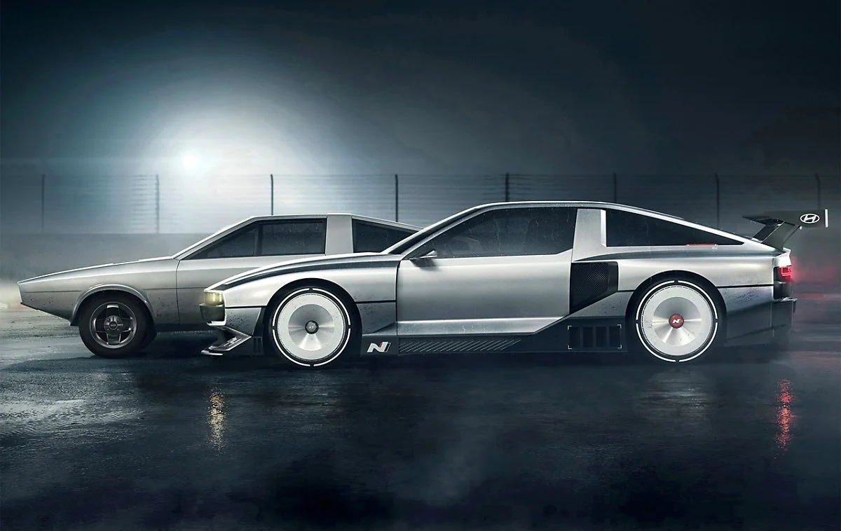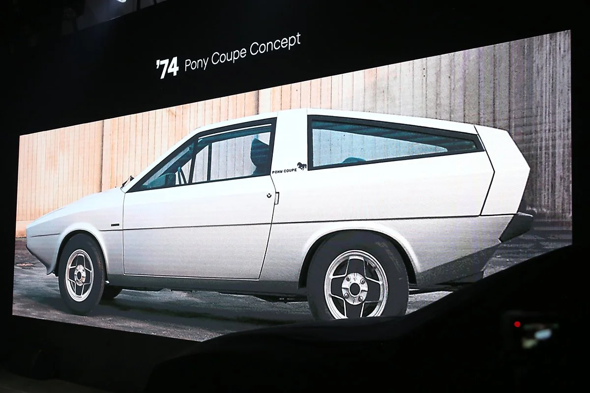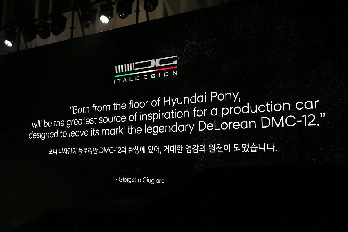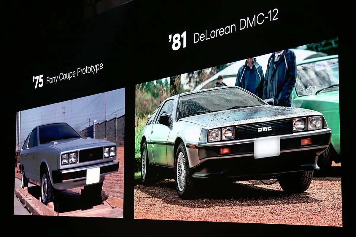 먼저 N 비전 74의 전신 ‘포니 콘셉트카’에 대해서 짚고 넘어갈 필요가 있습니다. 양산형 포니는 1975년에 패스트백 세단과 해치백으로 출시됐습니다. 하지만 포니의 전신이 되는 포니 콘셉트카는 쿠페였죠. 포니 쿠페 콘셉트카는 당시 유명 카로체리아 이탈디자인의 조르제토 주지아로가 디자인했습니다. 흥미로운 사실은 영화 ‘백 투 더 퓨처’에 등장해 전 세계적으로 유명해진 차량 드로리안 DMC-12가 포니 쿠페에서 영감을 받았다는 사실입니다. 포니 쿠페의 전반적인 실루엣과 디자인을 유심히 살펴보면 드로리안과 유사한 느낌을 가진 것을 확인할 수 있습니다.