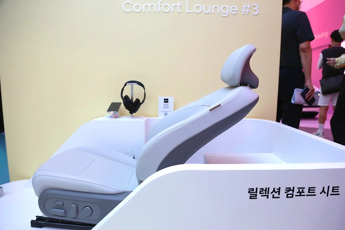 충분히 확보된 축간거리에 두툼한 리무진 시트를 장착한다면 공간 확보는 물거품이 되기 십상입니다. 아이오닉 5 대비 축간거리가 5mm 짧아졌지만, 실제로 탑승했을 때 그 차이를 느끼기 어렵습니다. 그 이유는 일반 시트 대비 약 30% 얇은 전기차 전용 슬림 디자인 시트를 장착했기 때문입니다. 이로 인해 5mm가 짧아진 축간거리는 느끼기 어려운데요. 시트 포지션도 뒤쪽으로 각도가 기울어져 있기 때문에 레그룸이나 헤드룸은 비슷한 디자인의 모델 대비 여유롭습니다.