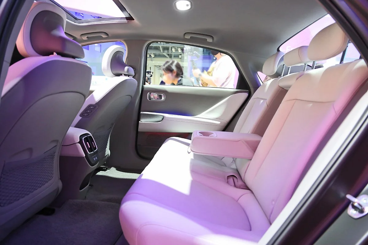 2도어 쿠페 혹은 4도어 쿠페들의 뒷좌석은 성인이 타기 어려울 정도로 좁고 불편합니다. 아이오닉 6도 4도어 쿠페에 가까운 콘셉트로 출시되었습니다만, 정통 세단처럼 편안하게 헤드룸을 충분히 확보했습니다. 웬만한 신장의 성인이 탑승해도 머리가 닿지 않을 정도로 천장을 움푹하게 파면서 높였고, 시각적인 개방감을 확보하기 위해 선루프 크기도 확대했습니다.