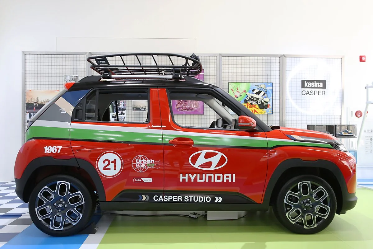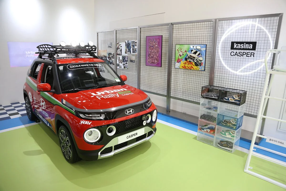 캐스퍼 스튜디오 성수에서는 끊임없이 새로움을 시도하는 두 브랜드의 가치와 감성을 느껴볼 수 있습니다. 가장 먼저 시선을 사로잡는 두 대의 쇼카, 캐스퍼 성수 에디션은 도심을 가로지르며 랠리 하는 모습과 성수의 자유로움을 표현했습니다.