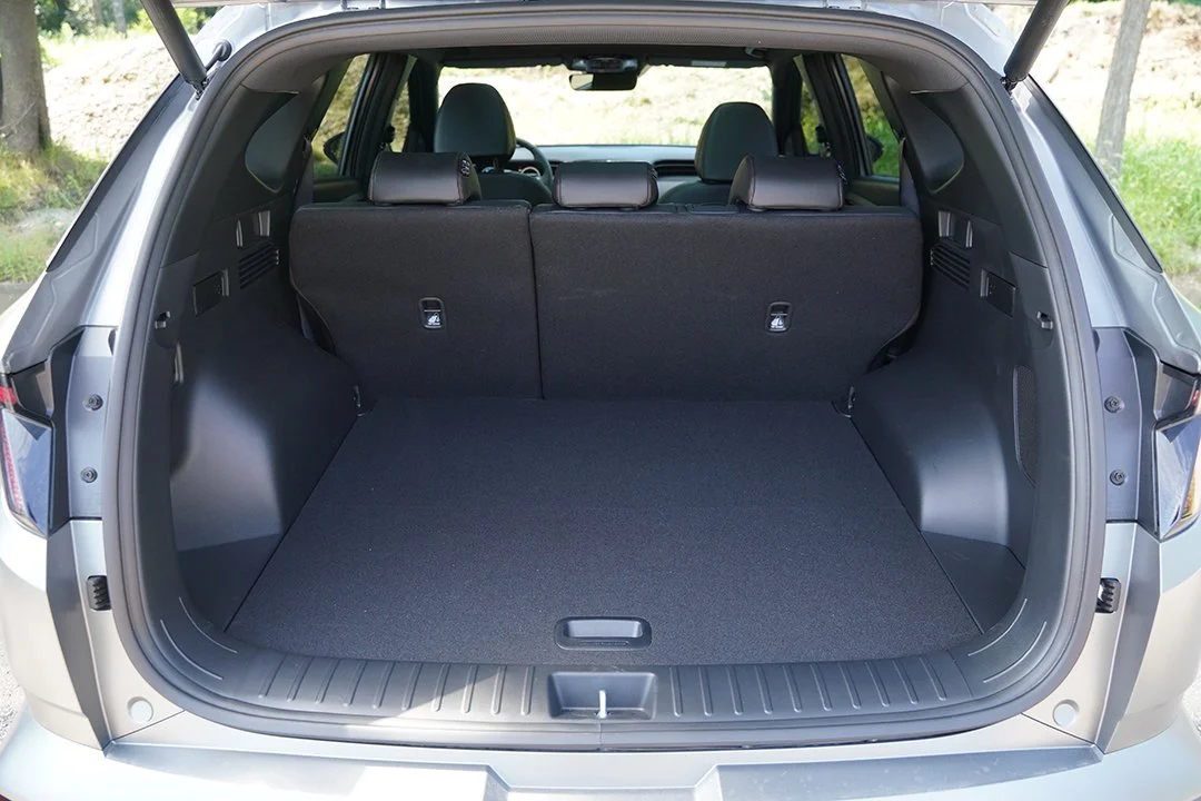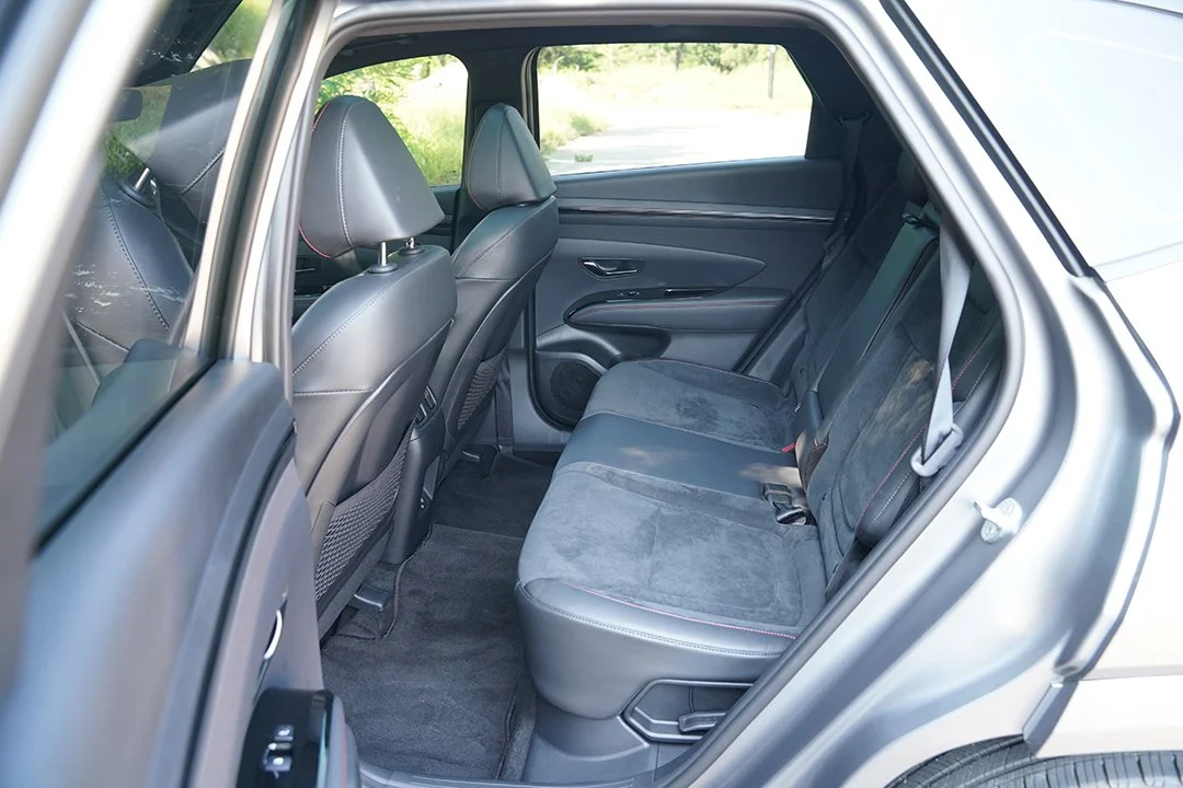 투싼 N Line 하이브리드의 2열은 패밀리 SUV로 활용하기에 충분히 넉넉한 공간을 제공합니다. 투싼 N Line의 기반이 되는 4세대 투싼은 3세대 모델과 비교하면 전장은 150mm 늘어난 4,630mm(N Line은 4,640mm), 휠베이스는 85mm나 늘어난 2,755mm입니다. 특히 휠베이스는 한 체급 위 모델인 싼타페의 휠베이스(2,765mm)와 비교했을 때 10mm밖에 차이가 나지 않습니다. 투싼 N Line 하이브리드는 길어진 휠베이스만큼 체급을 뛰어넘는 여유로운 2열 공간을 제공합니다.
