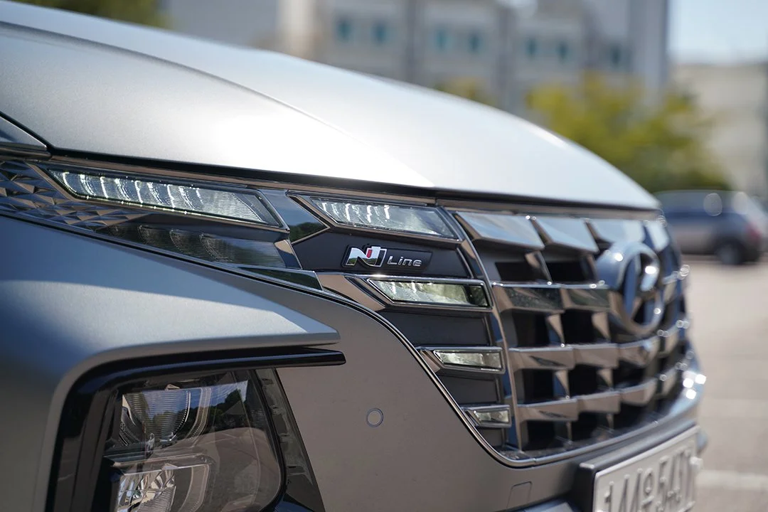 투싼 N Line은 4세대 투싼을 기반으로 N 브랜드의 스포티한 고성능 감성을 담아낸 디자인을 적용했습니다. 특히 투싼 N Line은 다른 N Line 모델과 달리 파워트레인, 서스펜션 변경 없이 역동적인 디자인을 곳곳에 반영한 것이 특징입니다. 전면부는 N Line 전용 파라매트릭 그릴을 적용했는데, 모서리 디자인을 수정해 보이는 각도에 따라 추가 반사를 만들어내 한층 더 세련된 느낌을 더했습니다.