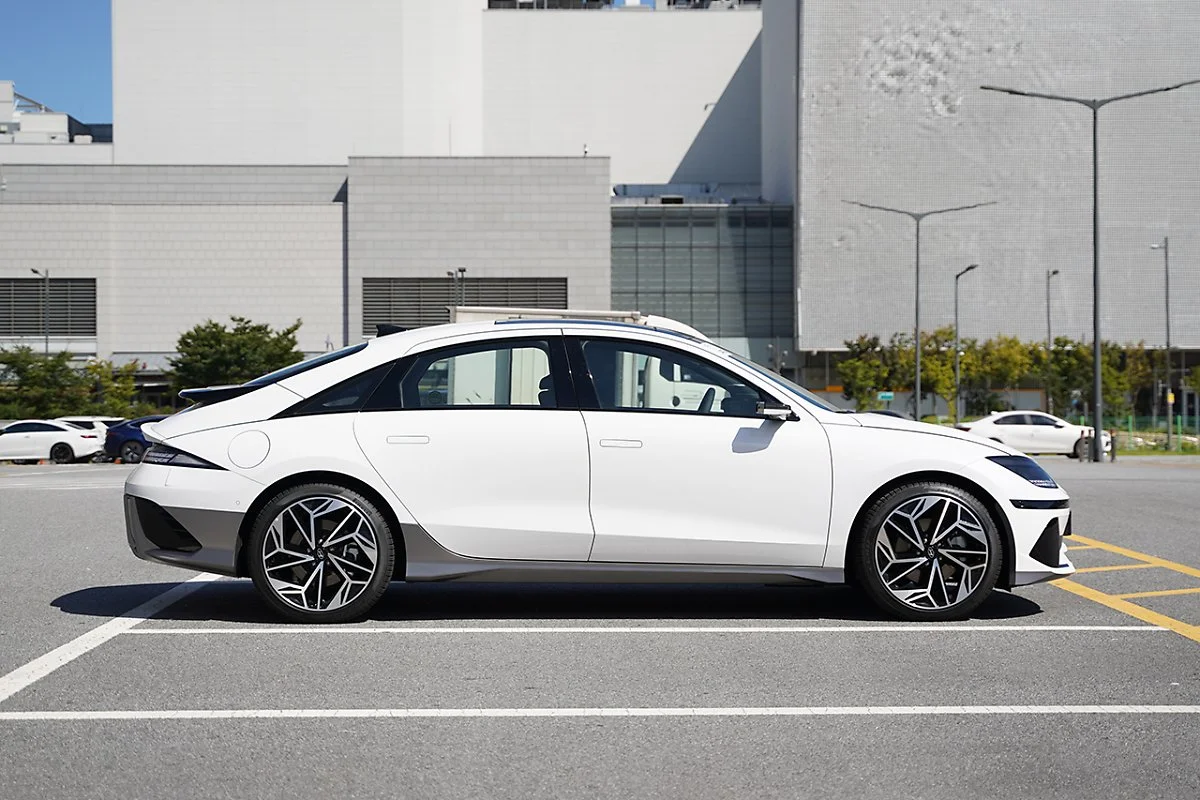 아이오닉 6의 측면부는 마치 오랜 시간 강물에 씻겨 다듬어진 ‘강돌’과 같은 모습입니다. 복잡한 캐릭터 라인을 최소화하고, 마치 하나의 덩어리로 느껴지는 측면 디자인은 아이오닉 6의 유선형 디자인을 더욱 강조해줍니다.