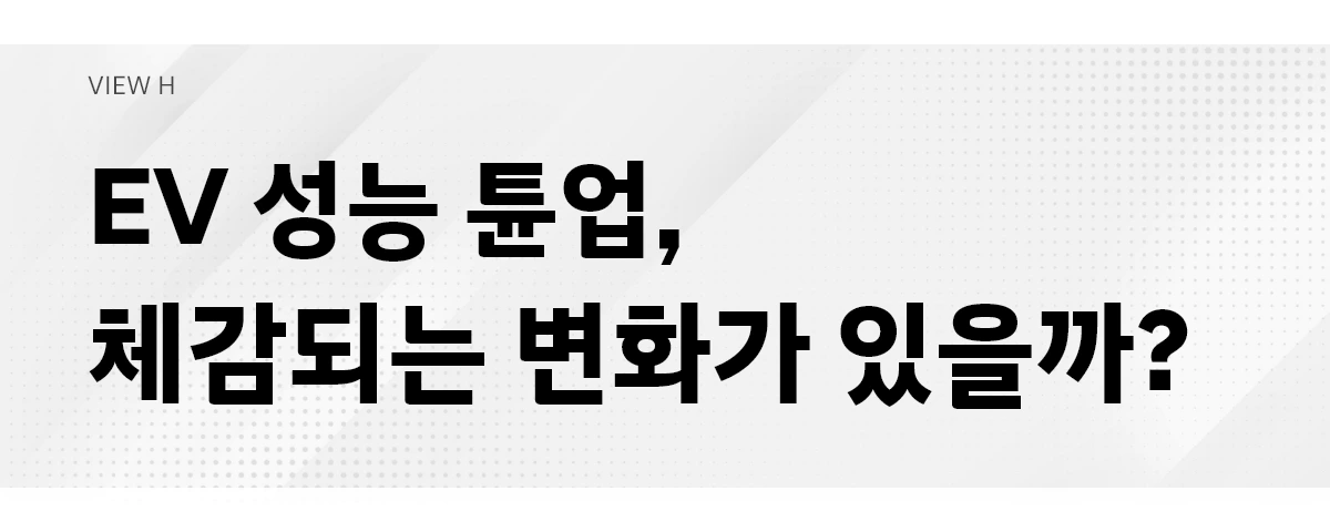 EV 성능 튠업은 차량의 운전감을 조절할 수 있을 뿐만 아니라 배터리 잔량이 부족한 상황 등 필요에 따라 차량의 주행거리를 늘리는데 활용할 수 있습니다. 4륜 구동방식을 2WD(항시 후륜구동) 모드를 사용하면 전비를 5~10% 정도 높일 수 있습니다. 특히 일반적인 주행 환경에서는 2WD 모드를 적극 활용하면 한층 긴 주행거리를 확보할 수 있습니다.