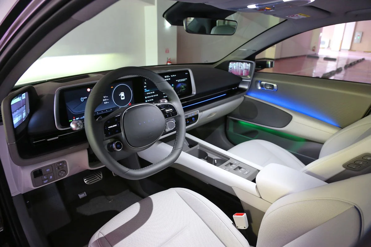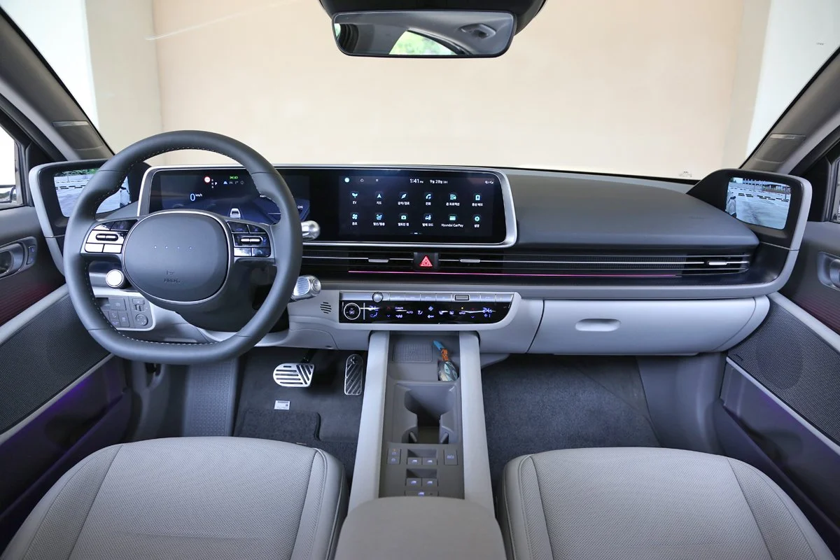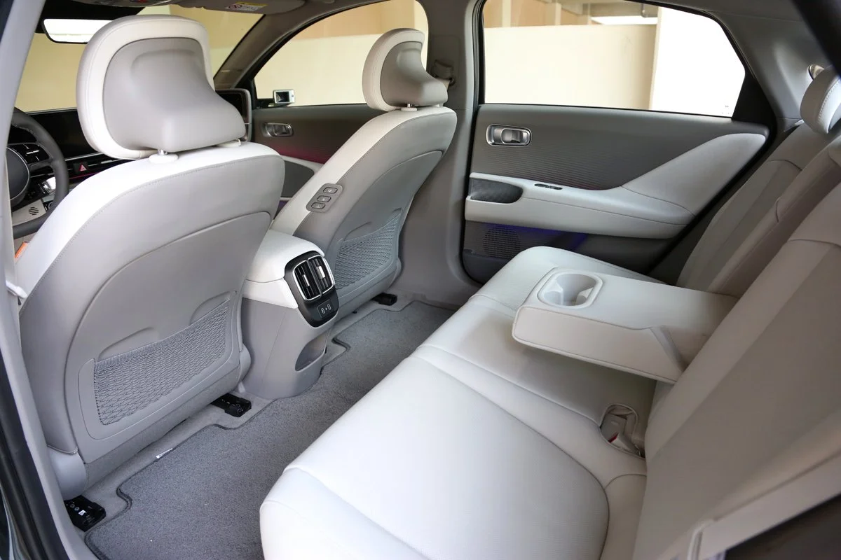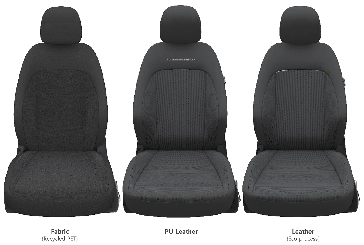 아이오닉 6는 블랙 인테리어를 기준으로 총 3가지 소재의 시트를 제공합니다. 3가지 소재는 패브릭과 인조가죽, 가죽 등으로 구분됩니다. 여기서 패브릭은 이미 버려진 PET를 재활용해서 원단으로 제작되는데요. 당연히 기존에 사용되었던 패브릭과 비교해서도 품질은 손색없는 수준입니다.