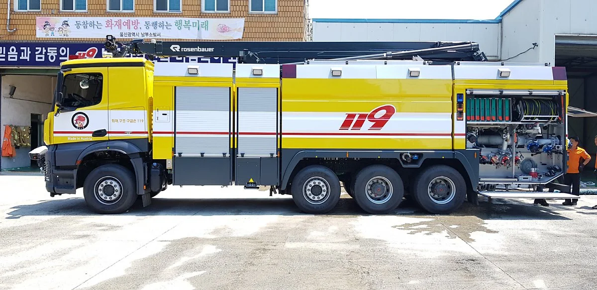 일부 고성능 화학 소방차(일명 화학차)는 빨간색과 노란색 혹은 형광색을 섞어 운영되는 경우도 생겨나고 있습니다. 색수차 기준에서는 노란색이 인식율이 높아서 유리하고, 빨간색은 진출색이라서 더 크고, 튀어나온 느낌을 줍니다. 덕분에 도로에 이동중인 차량 운전자들은 화학차를 쉽게 인지하고, 빠르게 길을 터줄 수 있겠죠. 물론 일반 소방차와 차별화된 색상으로 특별함을 부여하는 목적도 있습니다.