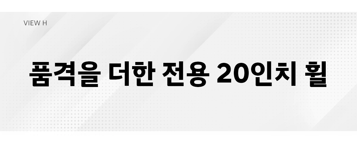 자동차 외관 디자인의 핵심인 휠 역시 캘리그래피 전용 19인치 휠이 기본으로 적용됩니다. 여기에 프리뷰 전자제어 서스펜션 사양을 추가할 경우 입체적이고 다이나믹한 디자인이 가미된 캘리그래피 전용 20인치 휠이 적용되어 플래그십 세단의 존재감을 완성합니다.