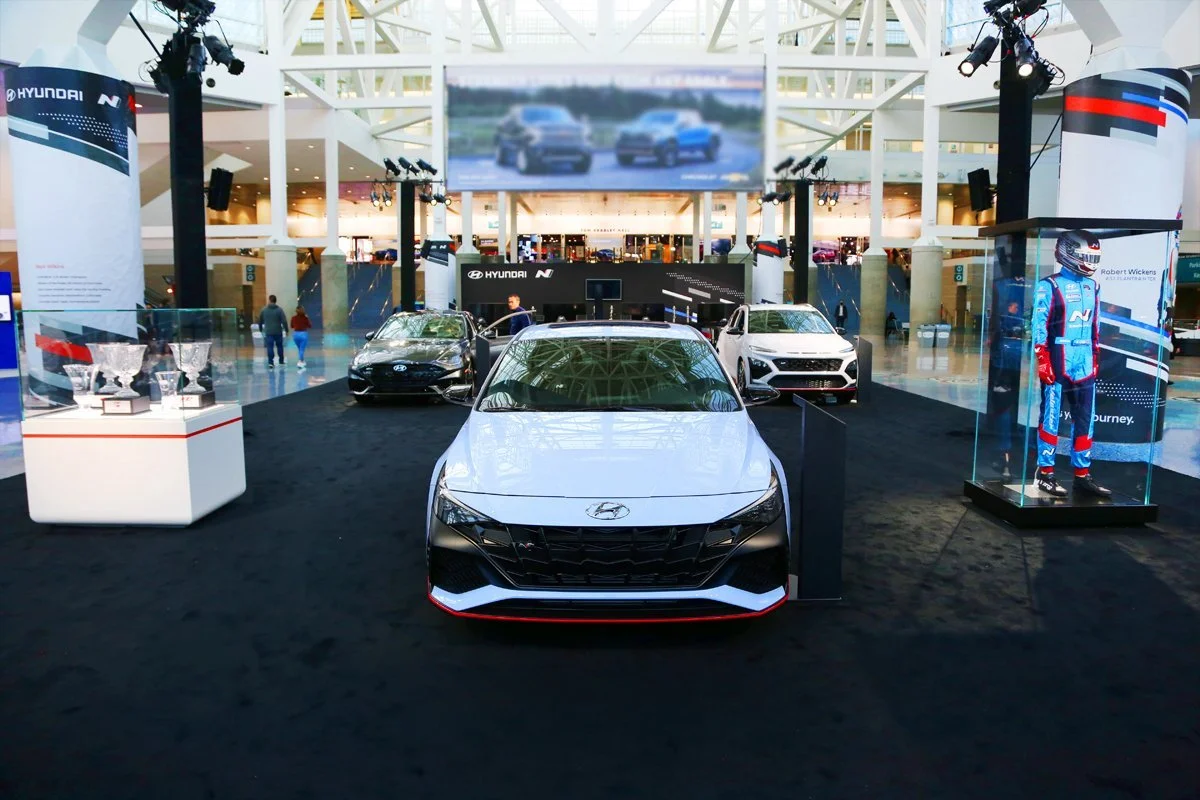 LA 컨벤션 센터의 메인 전시공간인 South Hall으로 입장하면 가장 먼저 현대자동차의 고성능 브랜드 N이 관람객들을 맞이합니다. 국내에서도 보기 힘든 엘란트라(아반떼의 수출명)N TCR 모델을 시작으로 엘란트라 N, 코나 N, 쏘나타 N line을 두루 살펴볼 수 있습니다.