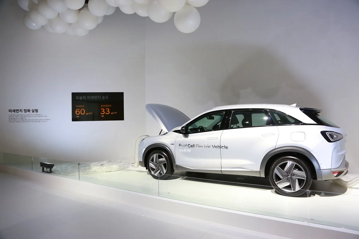 그래서 현대자동차는 수소연료전지에 그 어떤 제조사보다 앞장서서 과감한 투자와 연구개발을 이어왔습니다. 수소연료전지는 궁극의 친환경 기술이기 때문입니다. 전기차는 미세먼지나 벤젠과 같은 발암물질을 배출하지 않는 수준이지만, 수소연료전지 차량은 미세먼지와 발암물질을 공기청정기처럼 걸러냅니다. 이미 서울과 국내 도시 곳곳에서 운영되고 있는 수소연료전지 버스와 넥쏘가 움직이는 공기청정기 역할을 하고 있는 것이죠. 넥쏘가 1시간 주행하면 성인 42.6명이 1시간 동안 호흡하는 양, 버스는 성인 76명 분의 공기를 정화할 수 있습니다. 당연히 수소연료전지차가 늘어날수록, 대기환경은 개선될 수밖에 없습니다.