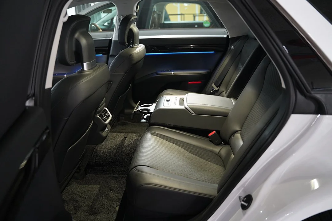 뛰어난 정숙성과 승차감은 2열에서 한층 더 강조됩니다. 전륜구동 세단 기반 차량인 만큼 여유로운 레그룸을 제공하는데, 시트를 뒤로 눕혀 방석 부분이 앞으로 나오더라도 충분히 여유로운 공간을 제공합니다. 또한 뛰어난 정숙성으로 인해 고속 주행 환경에서도 운전자와 대화하는데 전혀 불편함이 없었습니다.