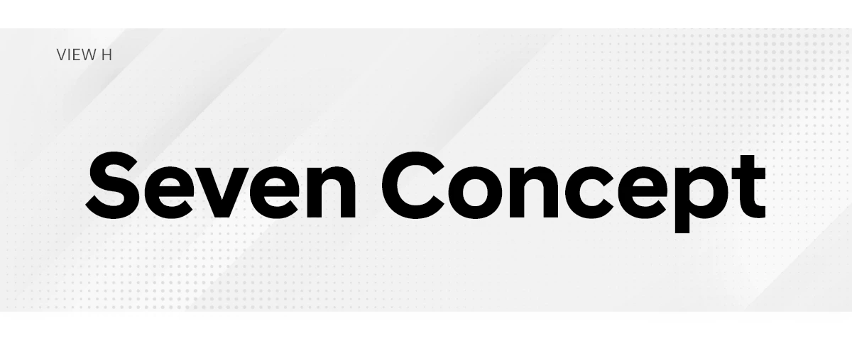 Seven Concept는 대형 차량이지만, 공력 효율에 최적화된 디자인과 순수한 조형미를 통해 전형적인 SUV 디자인과는 전혀 다른 실루엣을 연출하는 것이 특징입니다. 전기차 플랫폼을 기반으로 낮은 후드 전면부터 루프까지 이어지는 라인은 하나의 곡선과 같고, 긴 휠베이스로 보여줄 수 있는 존재감은 오직 Seven Concept만의 차별화된 디자인입니다.