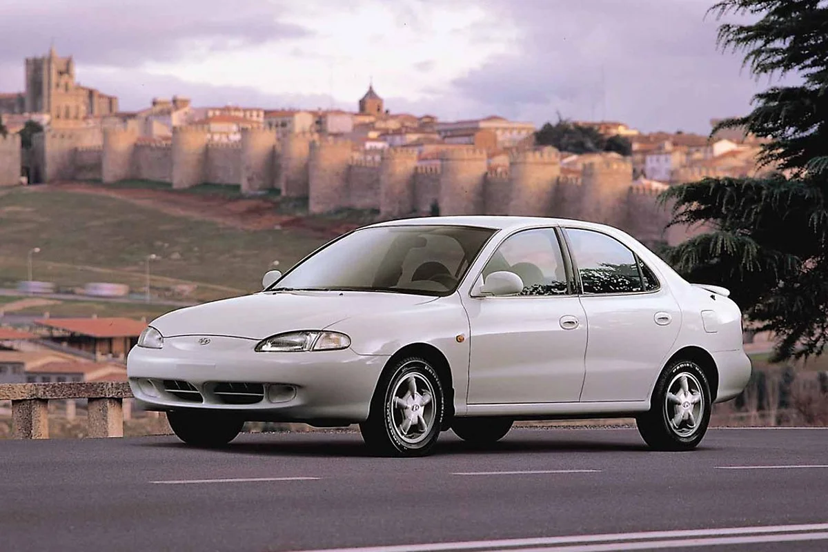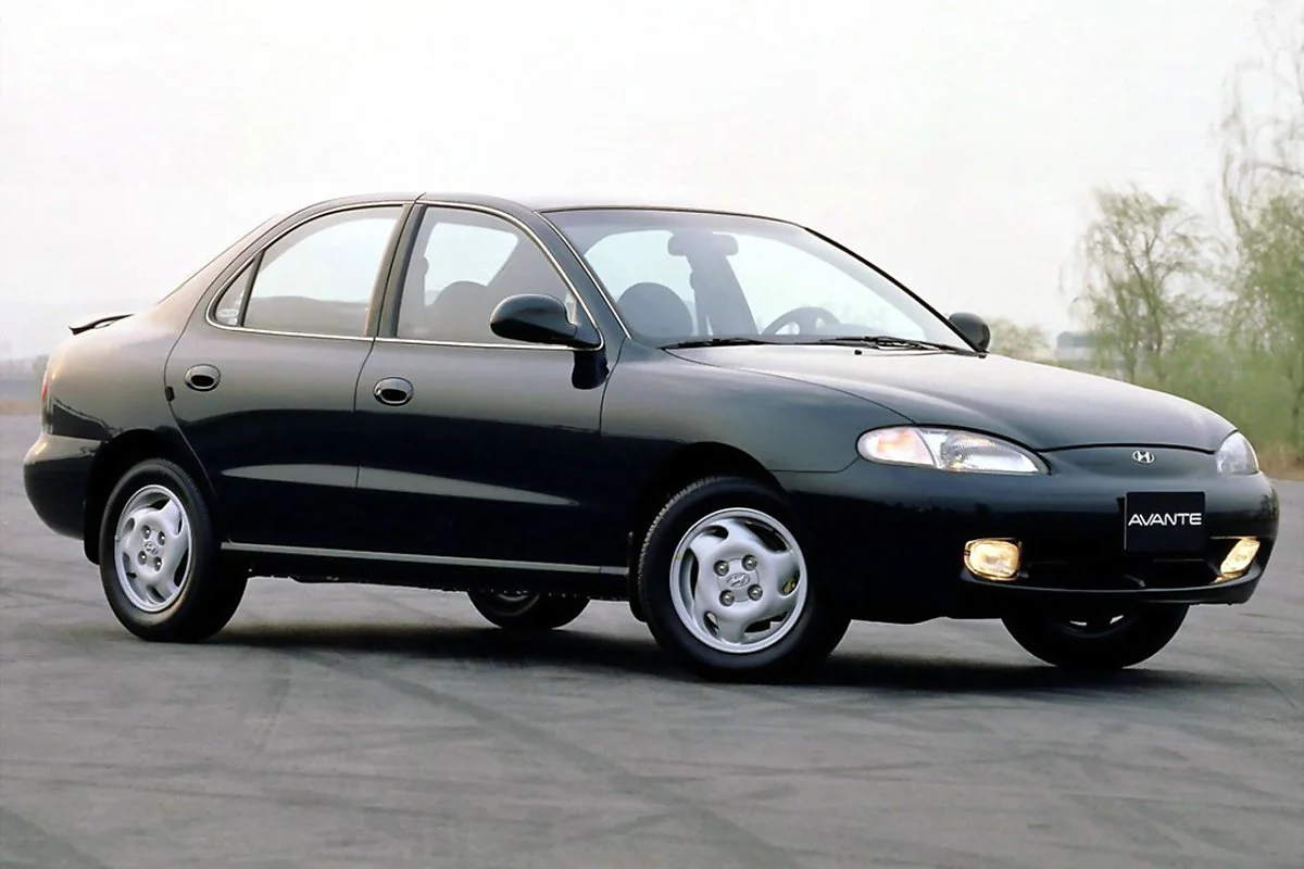 두 번째 차량은 2세대 아반떼입니다. 2세대 아반떼는 1995년 출시돼 2000년까지 판매된 차량입니다. 2세대 아반떼의 가장 큰 디자인 특징은 차체 전체가 매끈하게 다듬어진 조약돌의 형상을 가졌다는 점입니다. 현행 아이오닉 6와 유사한 물방울 형상의 곡선이 두드러진 디자인인 것이죠.