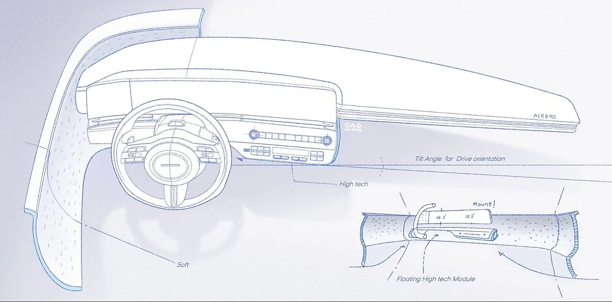 후면 디자인은 완전히 공개되지 않은 상태지만, 공개된 코나 일렉트릭을 보면 전체적으로도 대략 예상이 가능한 수준입니다. 전면과 마찬가지로 끊김없이 연결된 수평형 램프(Seamless Horizon Lamp)가 상단에 적용되며, 방향지시등과 후진등은 양 끝 아래로 배치됩니다. 무엇보다 독특한 것은 루프 스포일러에 위치한 보조제동등인데요. 지금까지 어떤 브랜드에서도 사용하지 않았던 형상의 디자인이 적용되어 눈길을 끕니다.