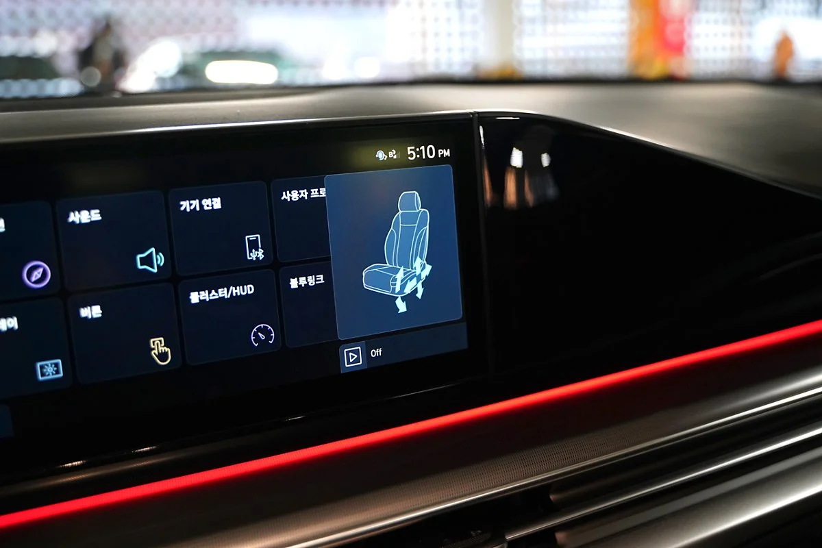 플래그십 세단인 디 올 뉴 그랜저의 운전석에는 에르고 모션 시트가 탑재됩니다. 18방향으로 섬세한 조절이 가능한 에르고 모션시트는 운전석 쿠션과 시트백 공기 주머니를 제어하여 최적의 착좌감을 선사하고 주행모드나 차량 속도와 연동해 측면 지지력을 최적화하여 최상의 프리미엄 승차감을 구현합니다.