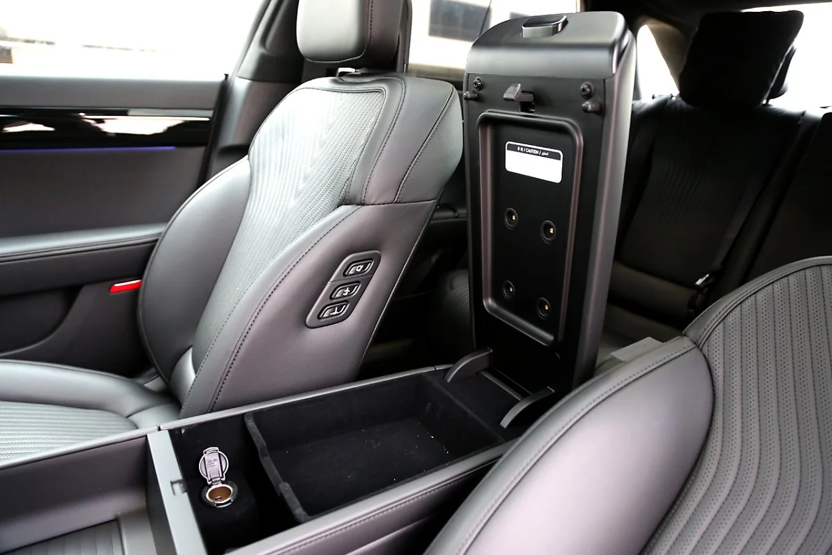 그랜저는 아이오닉 6와 달리 2열 센터 터널이 올라와 있어 가운데 좌석 활용성은 상대적으로 떨어집니다. 다만 그랜저 역시 2,895mm의 동급 내연기관 자동차 중 최장 휠베이스를 자랑하며, 전륜구동 기반 차량답게 여유로운 2열 공간을 제공합니다. 또한 2열 리클라이닝 기능과 뒷좌석 전동식 도어 커튼이 적용되어 2열 탑승객에게 여유 있고, 안락한 공간을 제공합니다.