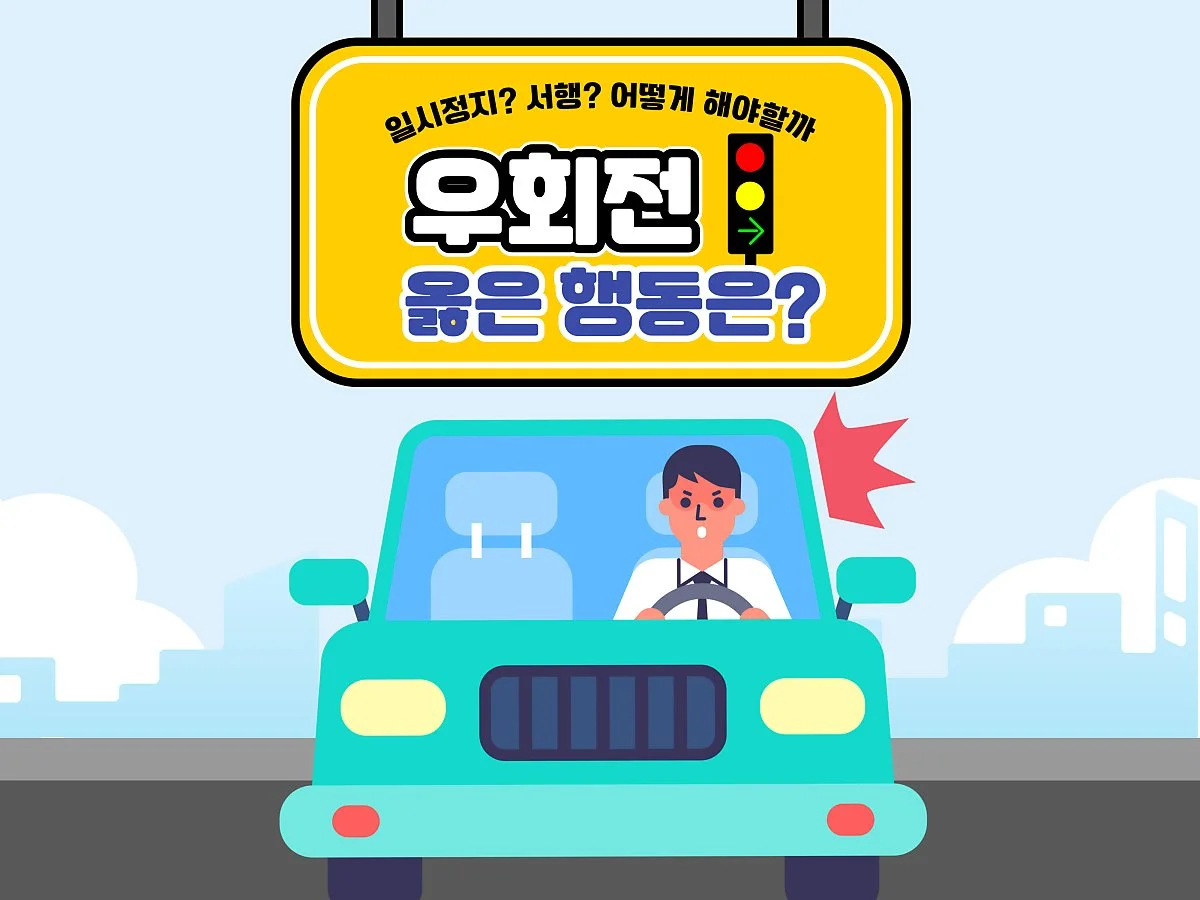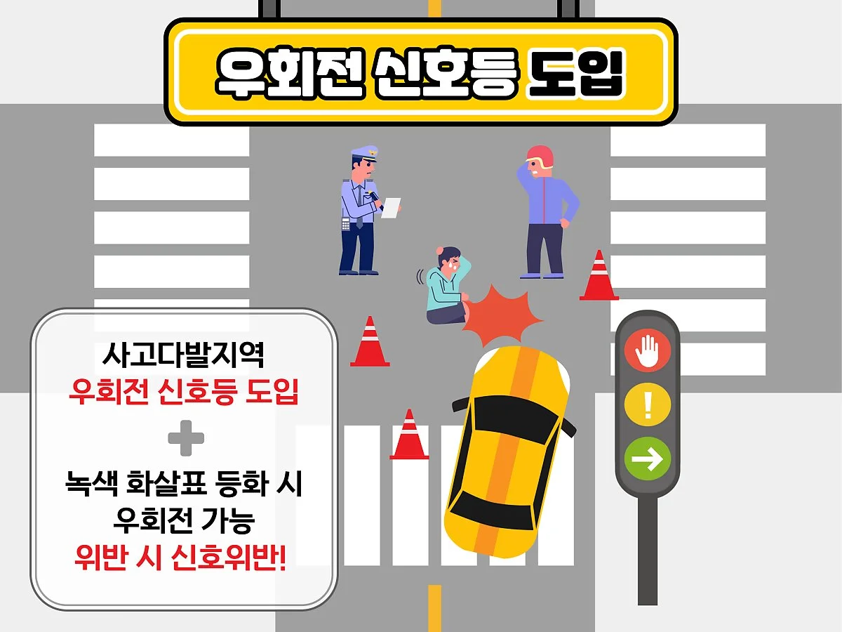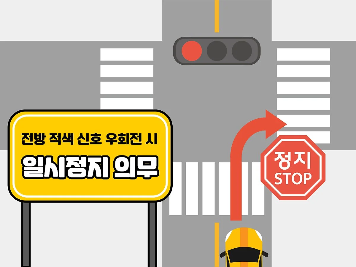다만, 별도의 우회전 신호가 없는 상황에서 전방 신호만 빨간불일 때는 주변을 확인하고, 기존처럼 우회전을 진행해도 무방합니다.